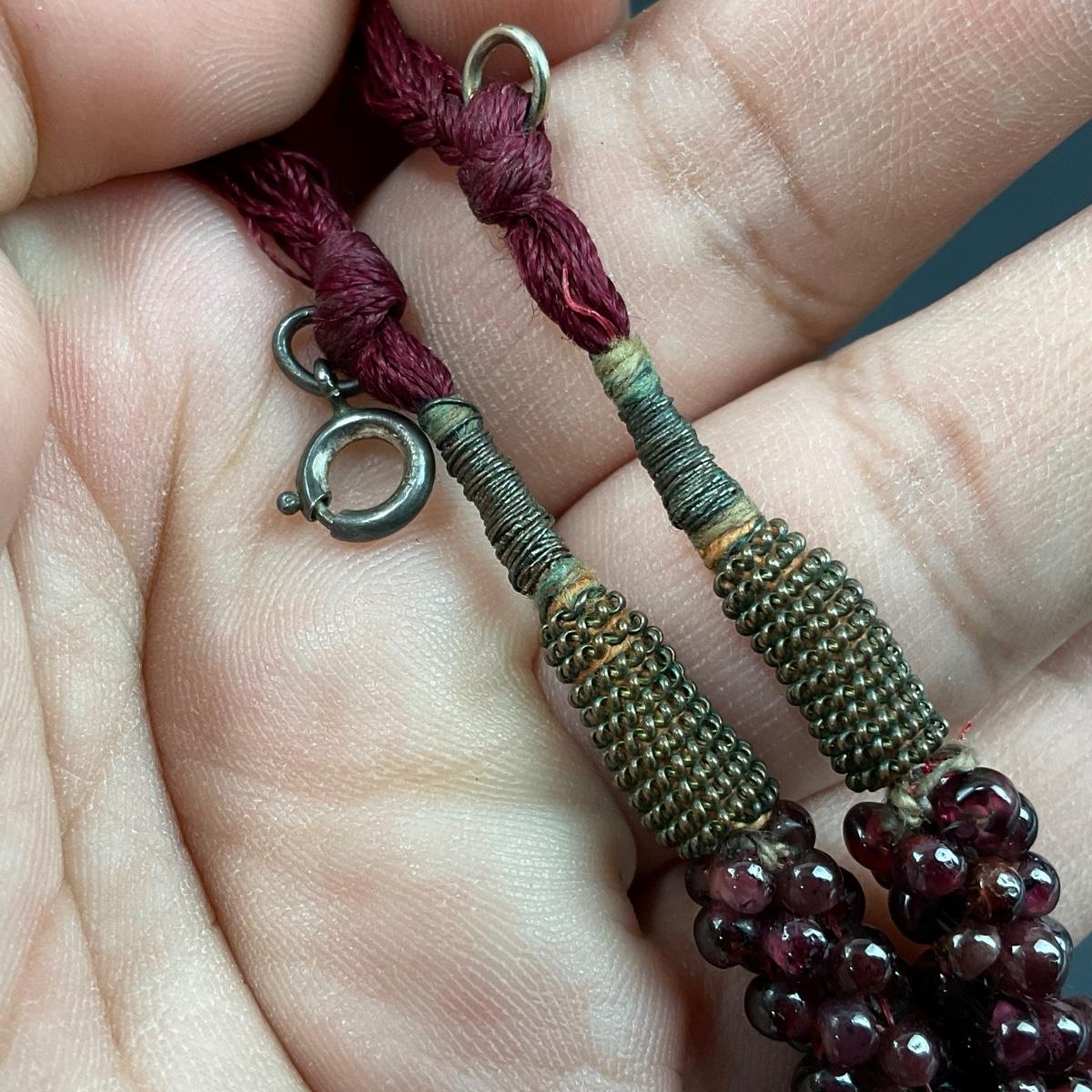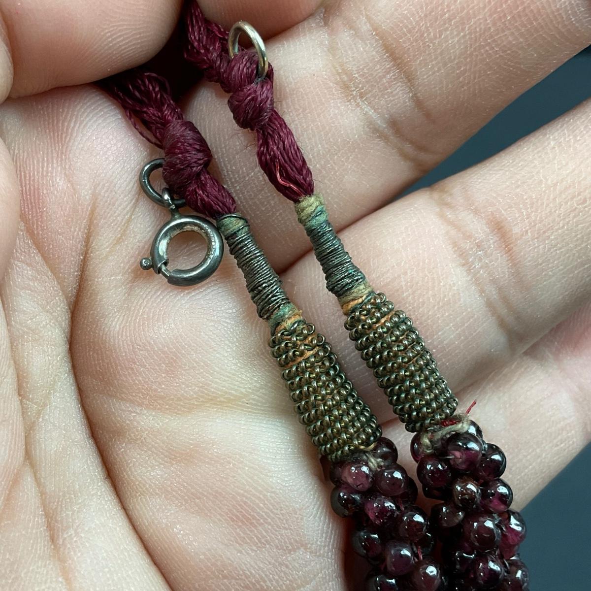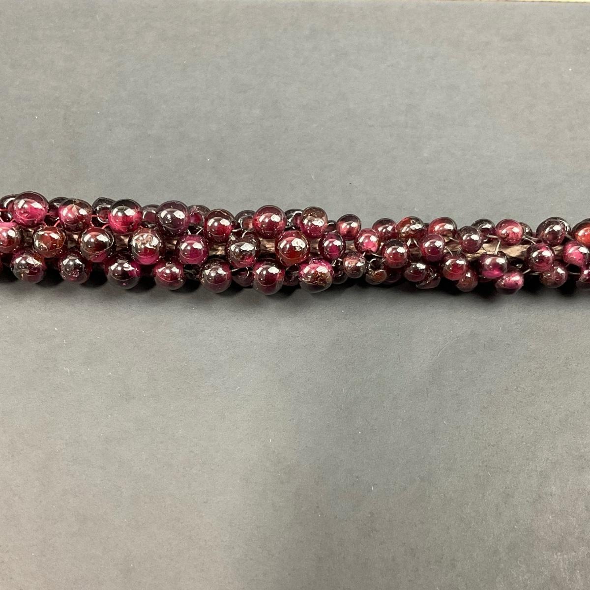 One vintage Garnet bracelet with matching necklace set. This piece has no damage, and appears to be in great shape with no visable chips, cracks, or broken pieces. Please see photos for details and condition. Any condition statement is given as a courtesy to a client, is an opinion, and should not be treated as a statement of fact. Reference to condition written, oral or within a condition report shall not be regarded as a full account of condition and may not include all defects, alterations, or restorations. Absence of a condition report does not imply a lot is flawless or lacking imperfections or damage. Katherine’s Auction & Appraisal Service shall have no responsibility for any error or omission. Returns shall not be accepted on the basis of condition. ::: Shipping is available on this lot. If you require shipping you must let us know at the close of the auction. We will coordinate with you after the item has been won. Shipping fees will include insurance up to or exceeding the value of all items being mailed. If you have any questions regarding this lot please contact the auctioneer either via this website, by direct email or by phone. PICK UP TIMES and other important information can be found in the TERMS and DESCRIPTION of the auction. Please take a look for pertinent information. Thanks!