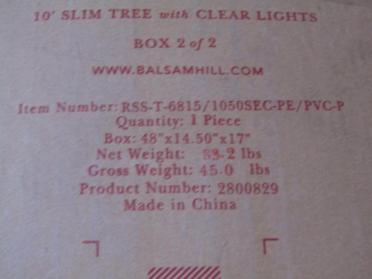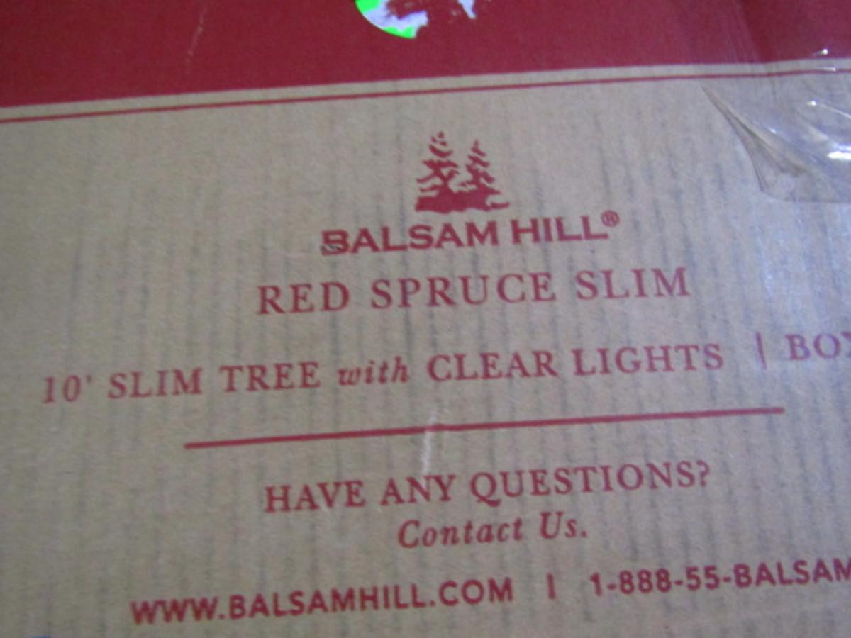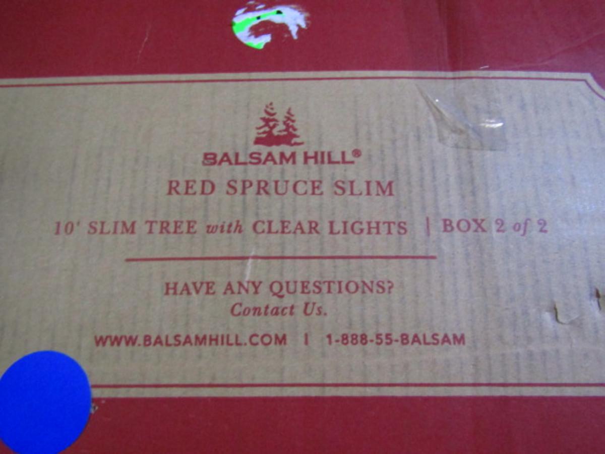 10 Foot Balsam Hill Christmas Tree- Red Spruce Slim Tree with Clear Lights