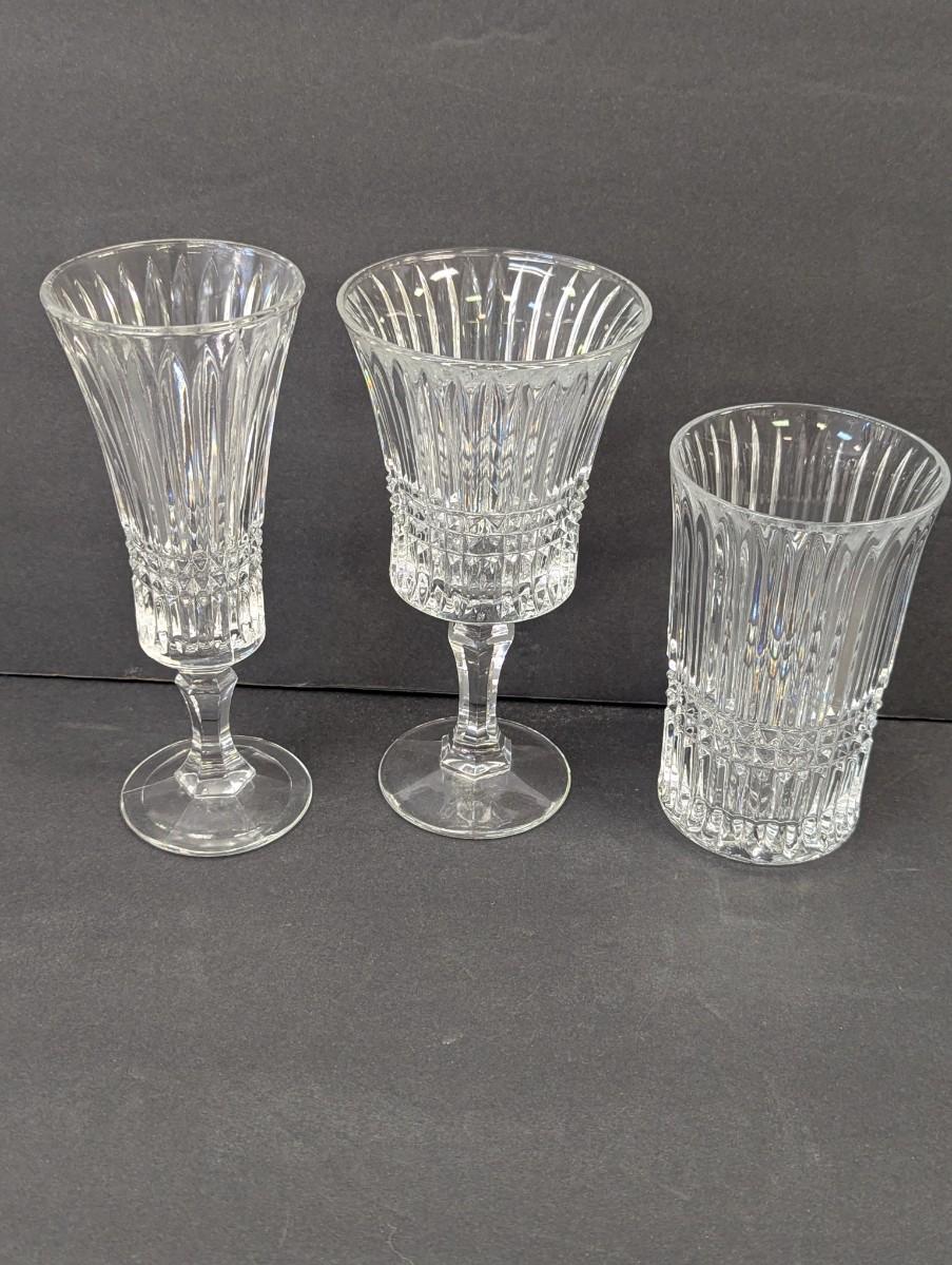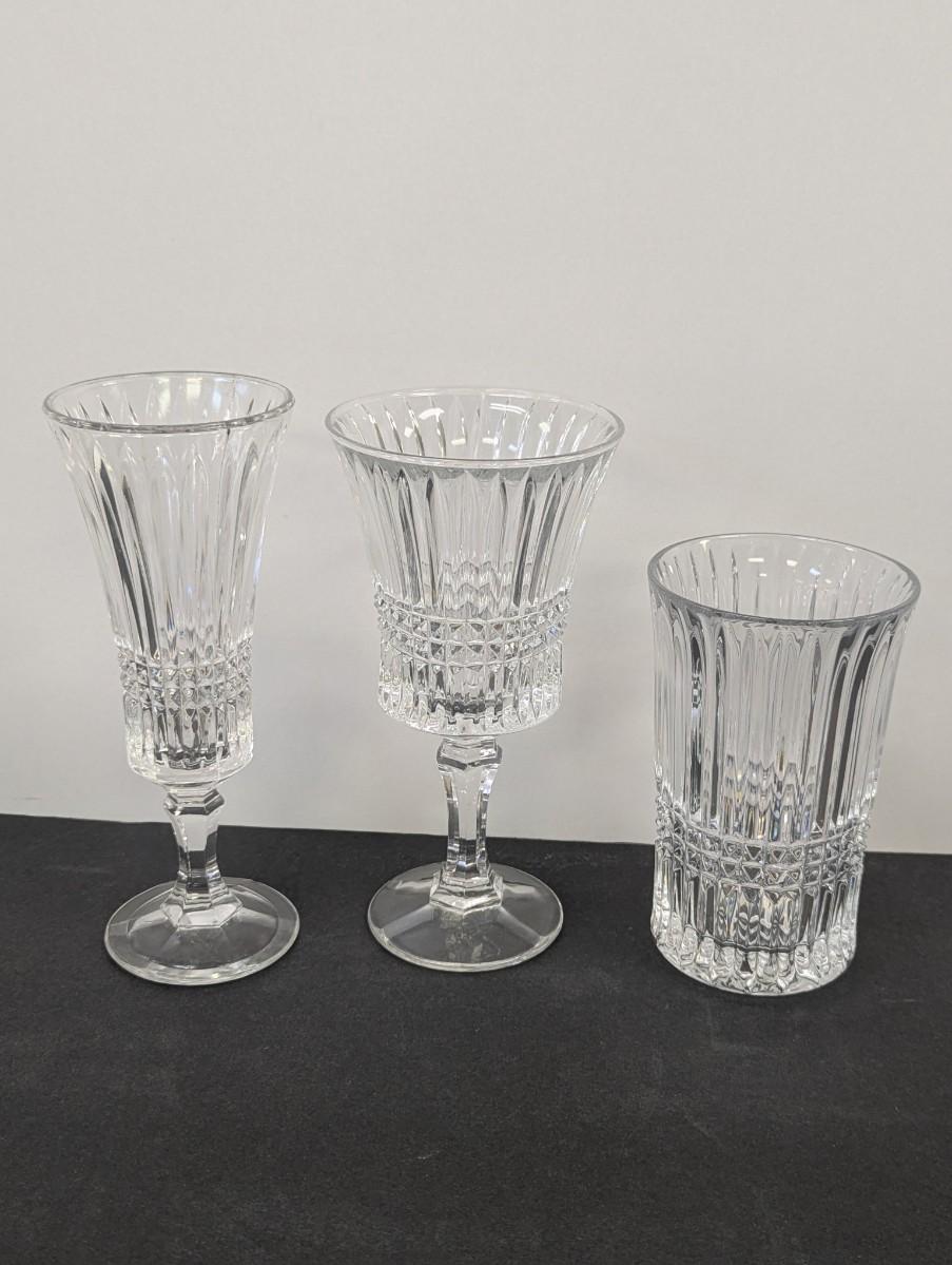 1 tea glass, 7 fluted glasses and 2 water glasses