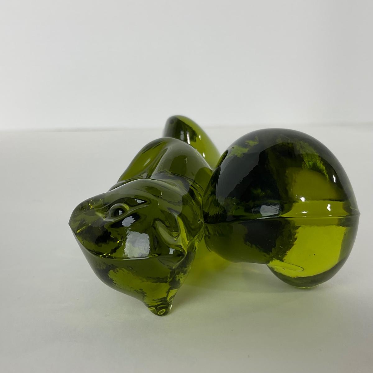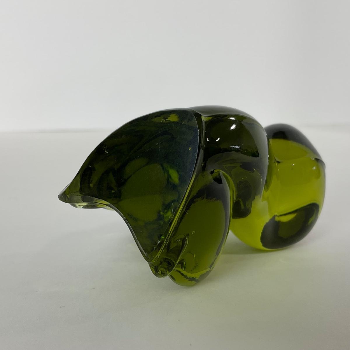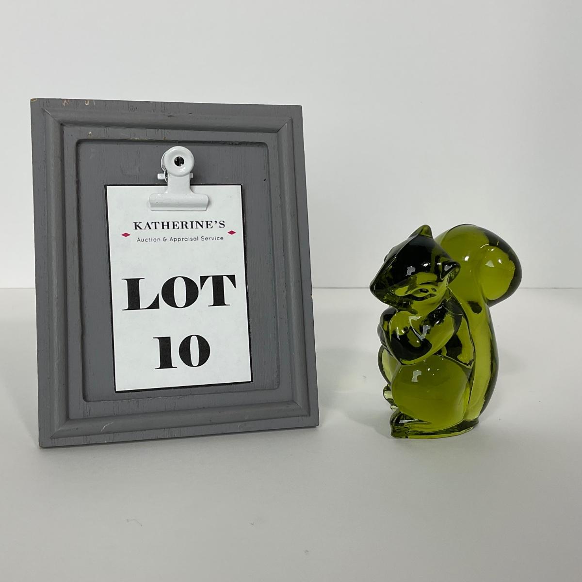 One solid olive green sitting Fostoria Squirrel. 3 1/4 inches tall. This piece has no damage, and appears to be in great shape with no visable chips, cracks, or broken pieces. Please see photos for details and condition. Any condition statement is given as a courtesy to a client, is an opinion, and should not be treated as a statement of fact. Reference to condition written, oral or within a condition report shall not be regarded as a full account of condition and may not include all defects, alterations, or restorations. Absence of a condition report does not imply a lot is flawless or lacking imperfections or damage. Katherine’s Auction & Appraisal Service shall have no responsibility for any error or omission. Returns shall not be accepted on the basis of condition. ::: Shipping is available on this lot. If you require shipping you must let us know at the close of the auction. We will coordinate with you after the item has been won. Shipping fees will include insurance up to or exceeding the value of all items being mailed. If you have any questions regarding this lot please contact the auctioneer either via this website, by direct email or by phone. PICK UP TIMES and other important information can be found in the TERMS and DESCRIPTION of the auction. Please take a look for pertinent information. Thanks!