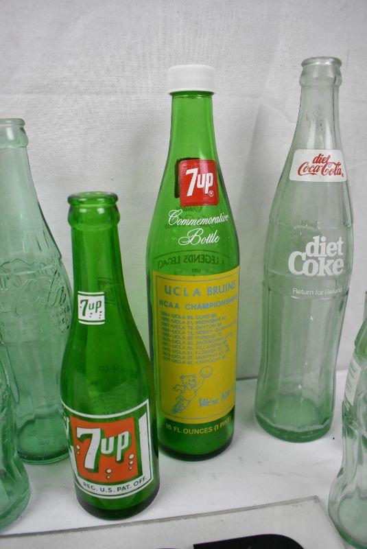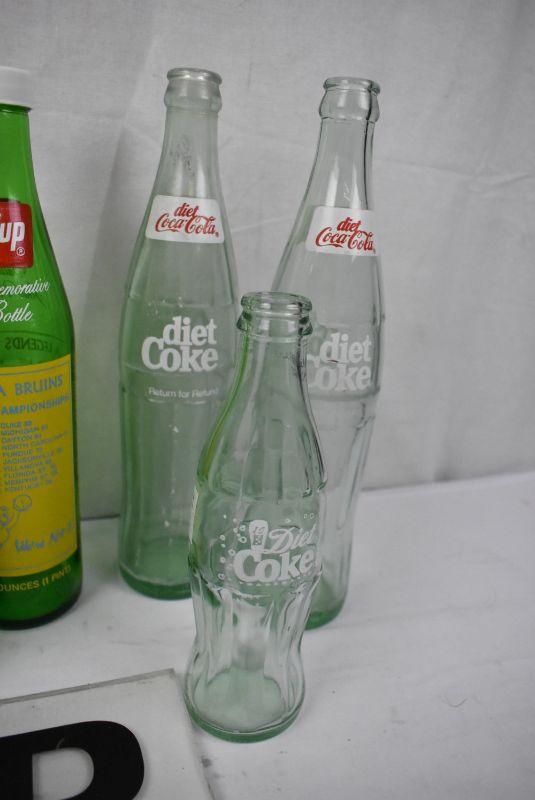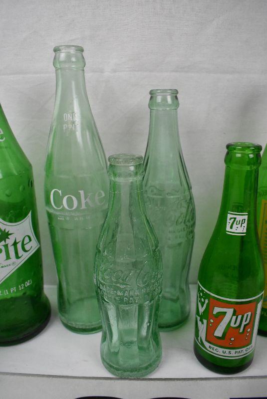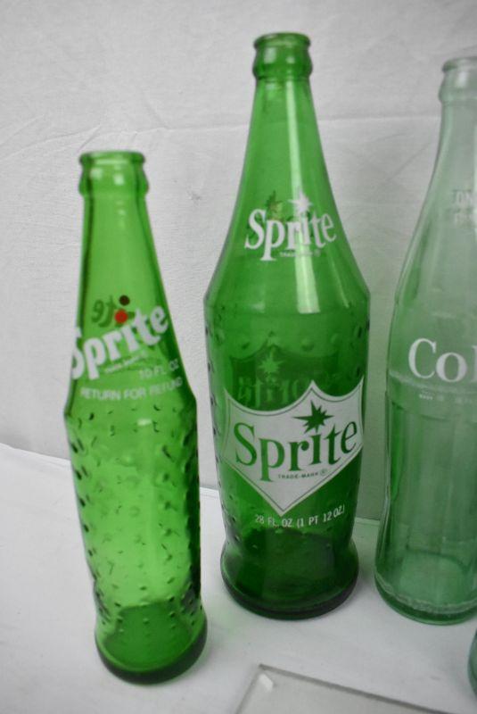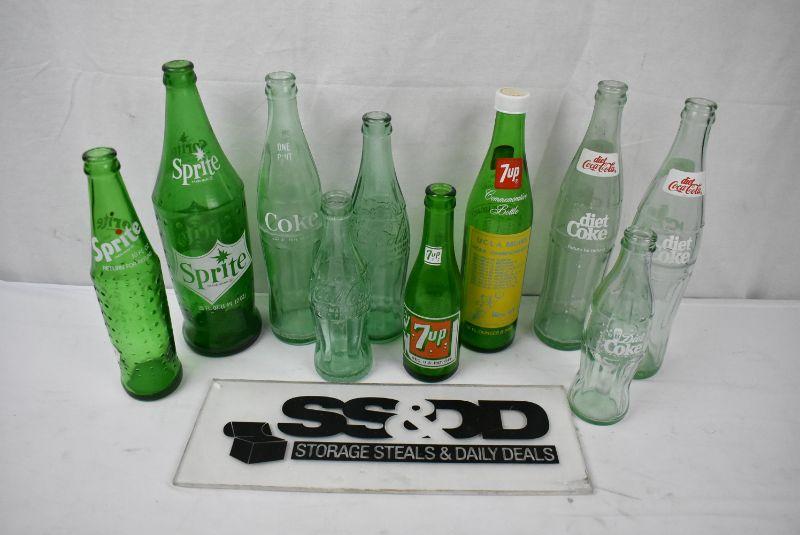 10 Glass Soda Bottles: Sprite, Coke, Diet Coke, 7-Up