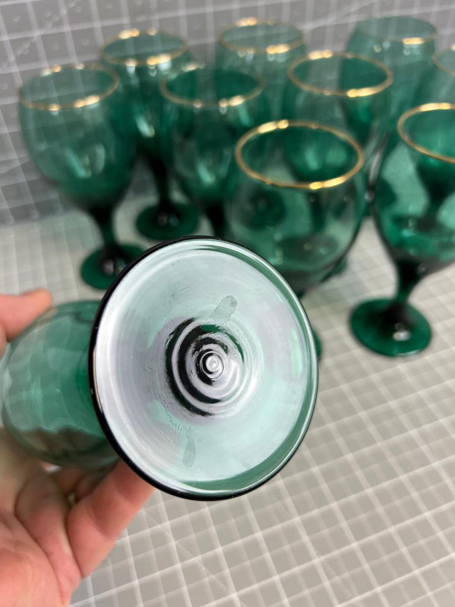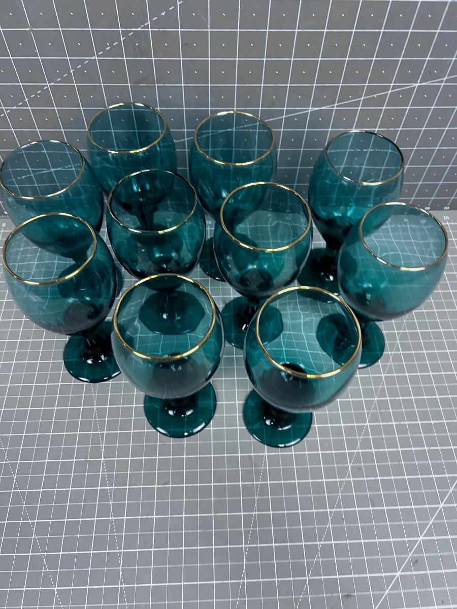 10 Gold Rimmed GREEN Glass Goblet