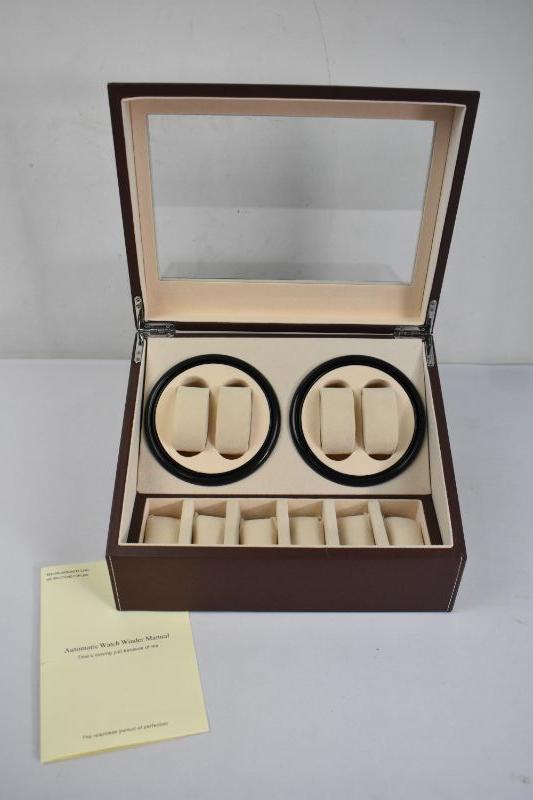 10 Grid Luxury Watch Storage Case Display Box Organizer With Framed Glass Lid - Rotator/Winder Function Does NOT Work