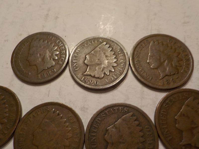 nice collection of Indian head pennies, 1907, 1891, 1885,1906, 1891, 1887, 1890.