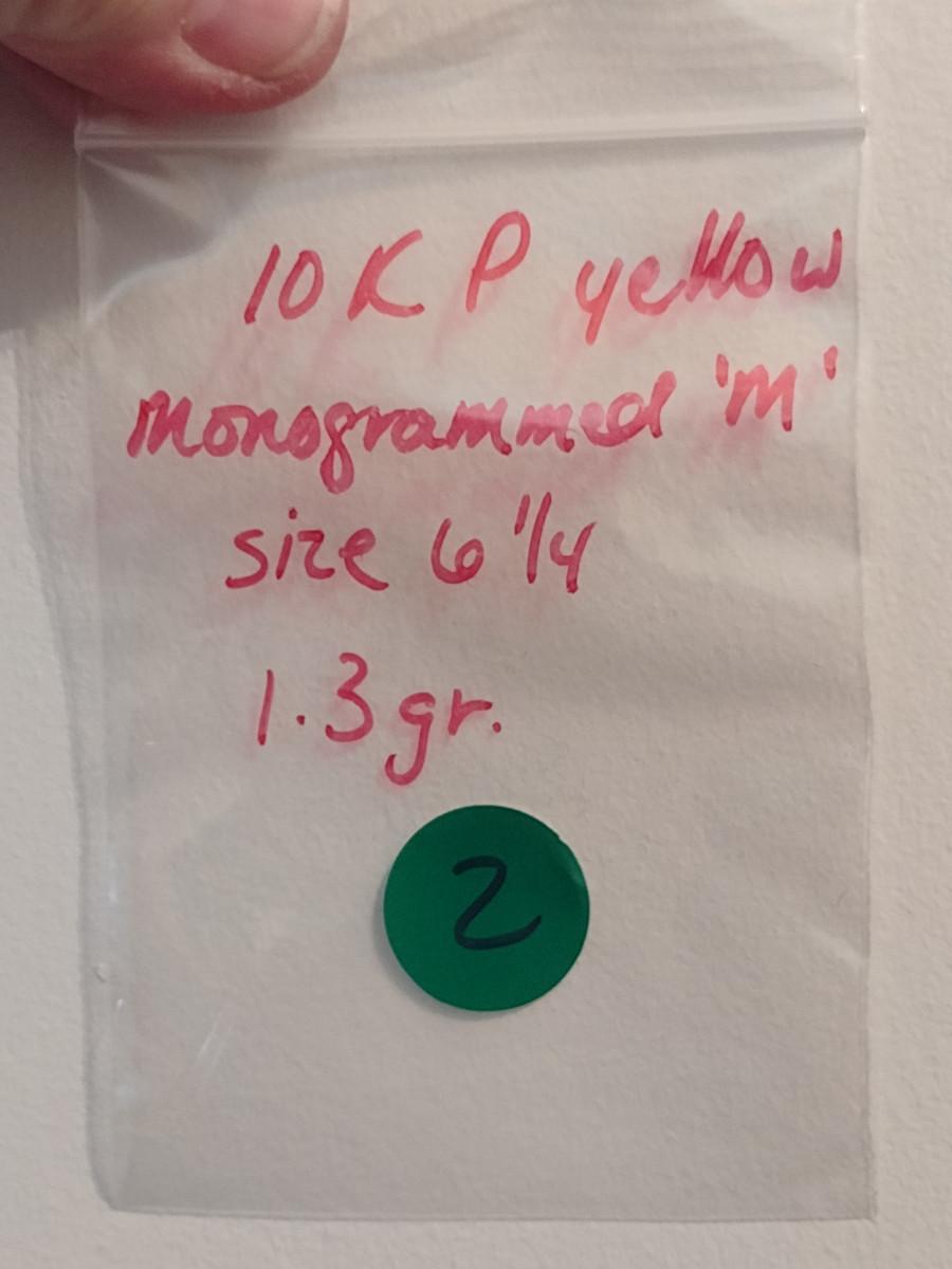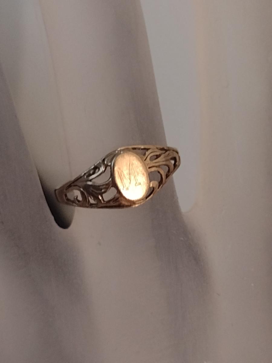 10 Karat Plumb Yellow Gold Monogrammed 'M' Ring- Approx Size 6 1/4 and Total Weight 1.3 Grams (#2)