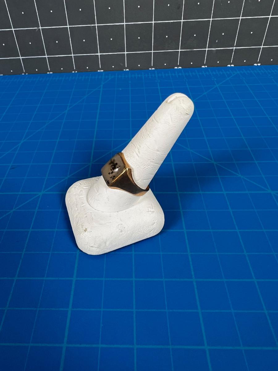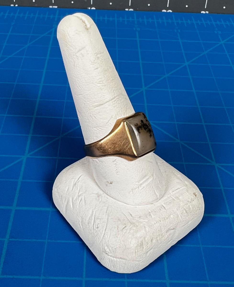 10 Karat Ring, with Cloudy Stone with black Inclusions - ? Black Dot Quartz