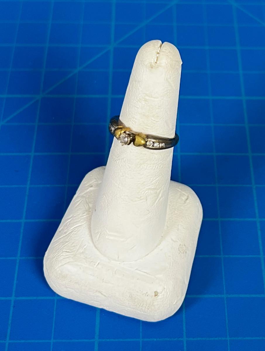 10 Karat Ring, with small Diamonds w 6 tiny Diamonds and a gold heart on each side.