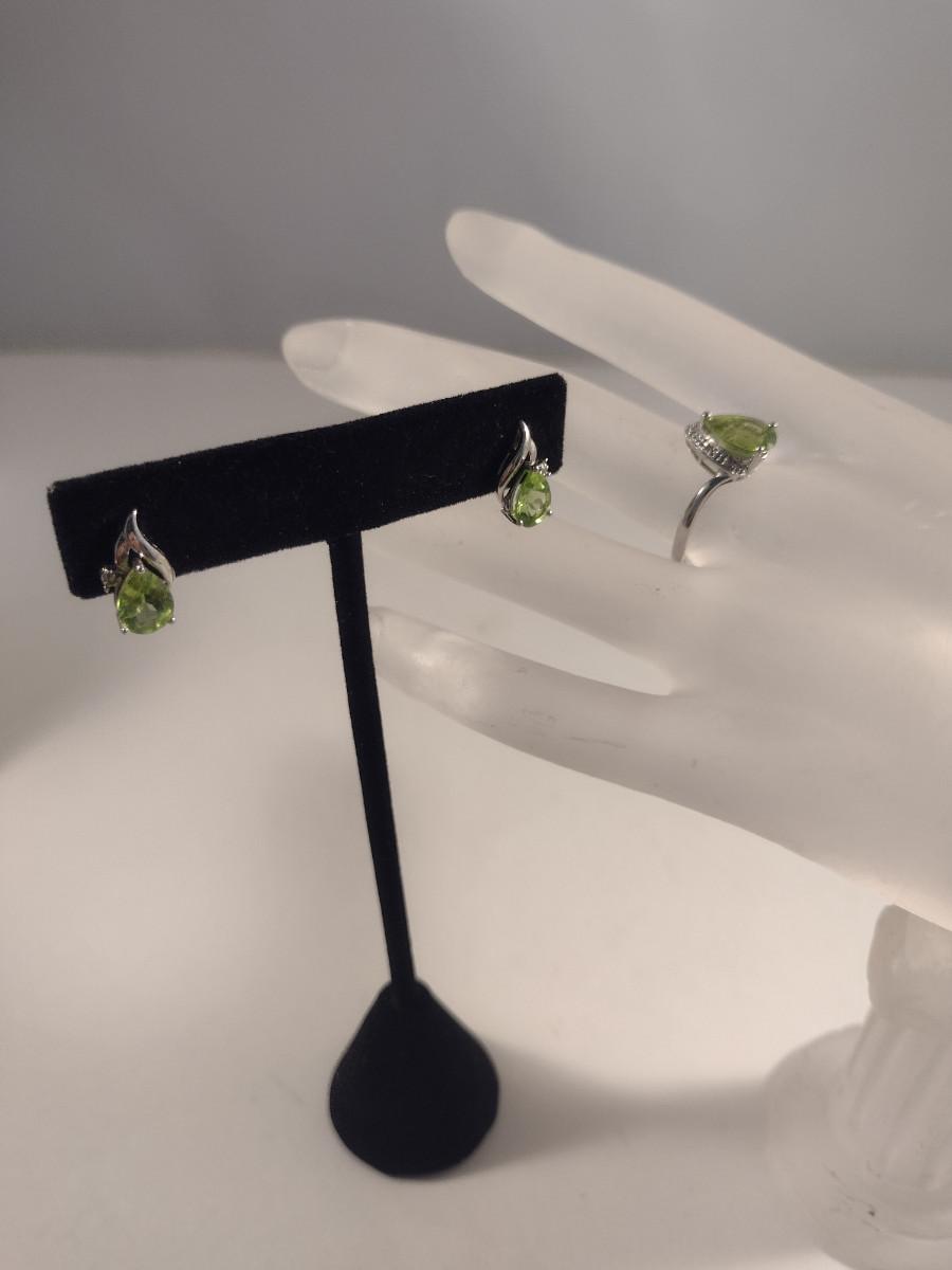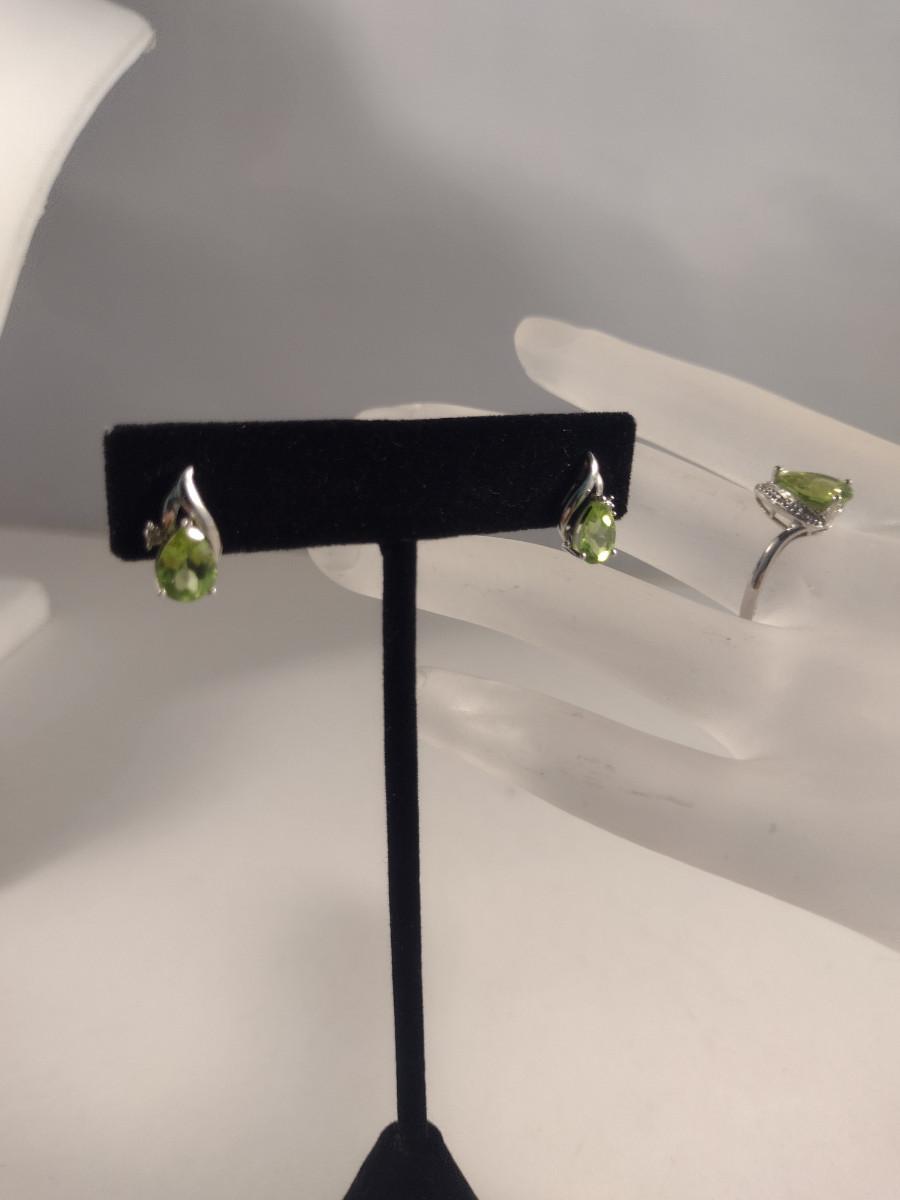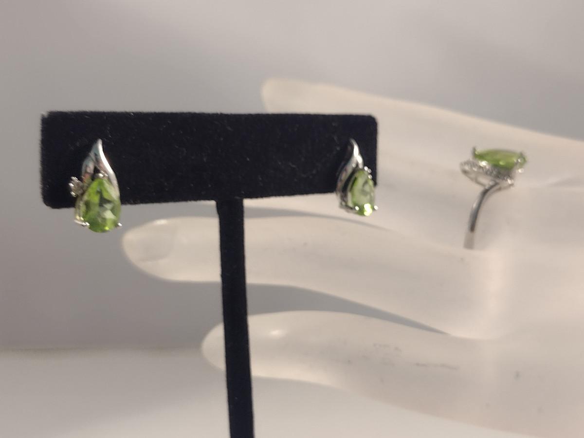 10 Karat White Gold with Peridot and Diamond Ring and Earrings- Approx Total Weight 4.2 Grams (#37)
