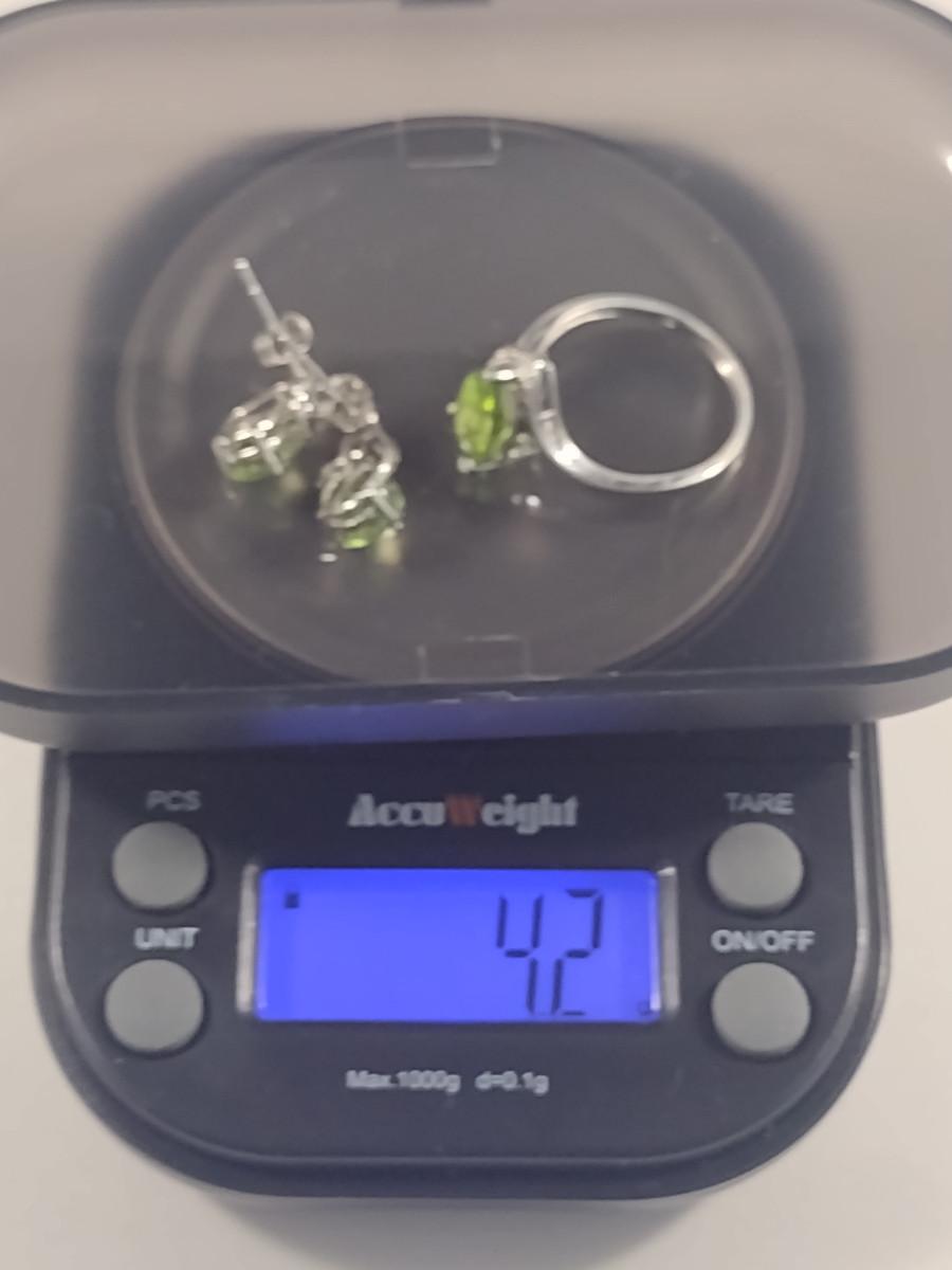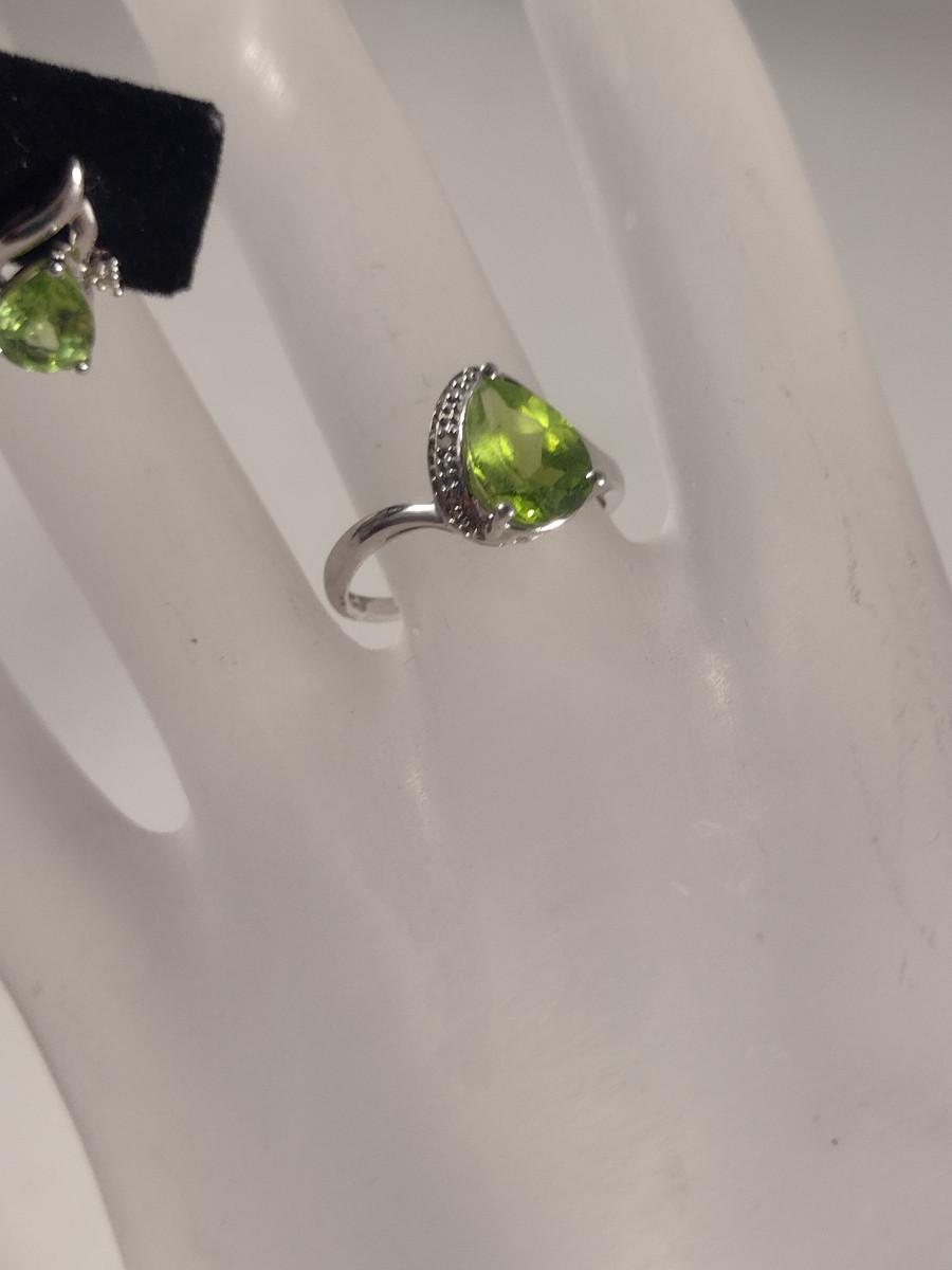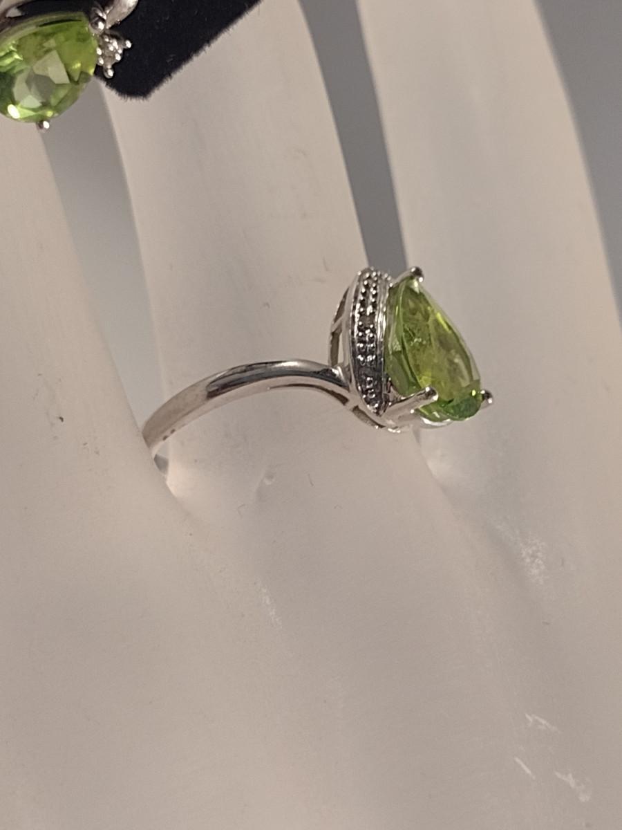 10 Karat White Gold with Peridot and Diamond Ring and Earrings- Approx Total Weight 4.2 Grams (#37)