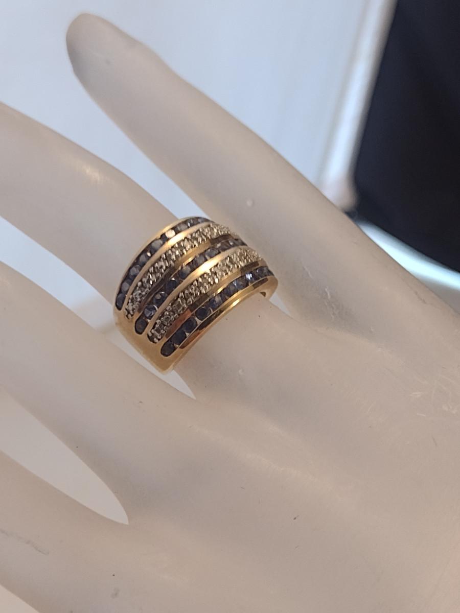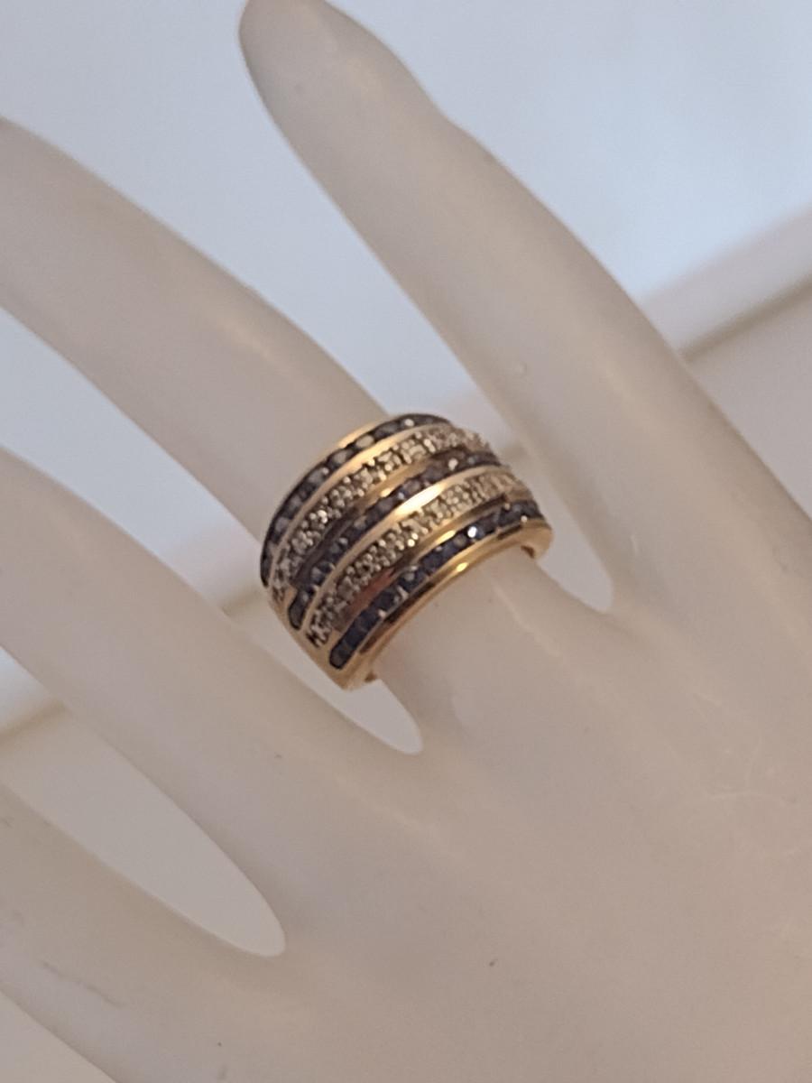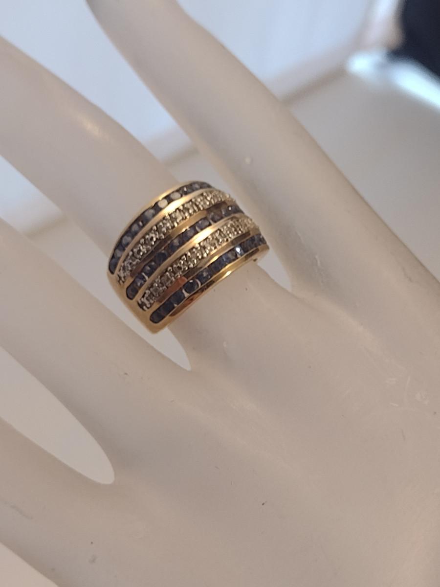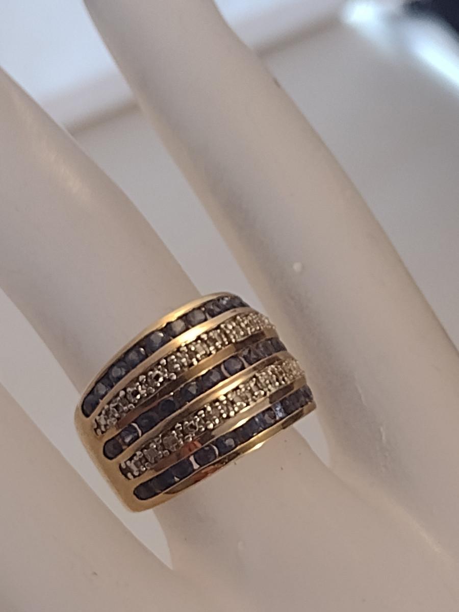 10 Karat Yellow Gold and Gemstone Ring- Size 5 1/2- Approx Weight 7.6 Grams (#7). Possible sapphire and diamond.