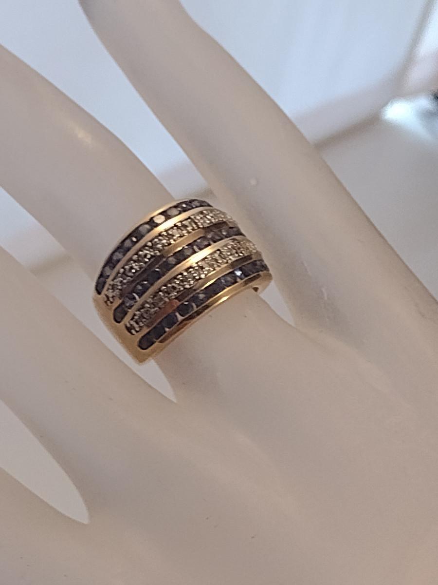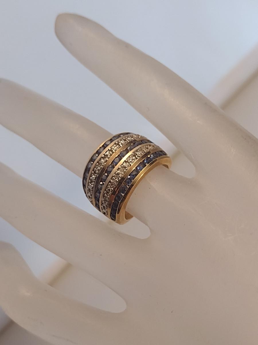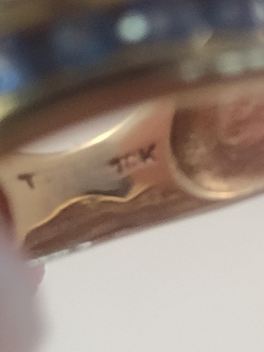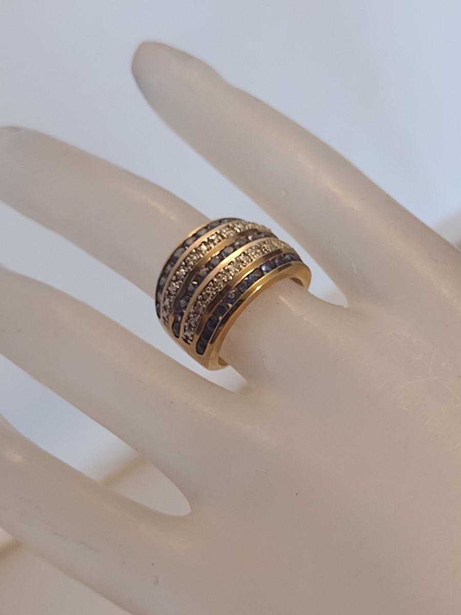 10 Karat Yellow Gold and Gemstone Ring- Size 5 1/2- Approx Weight 7.6 Grams (#7). Possible sapphire and diamond.