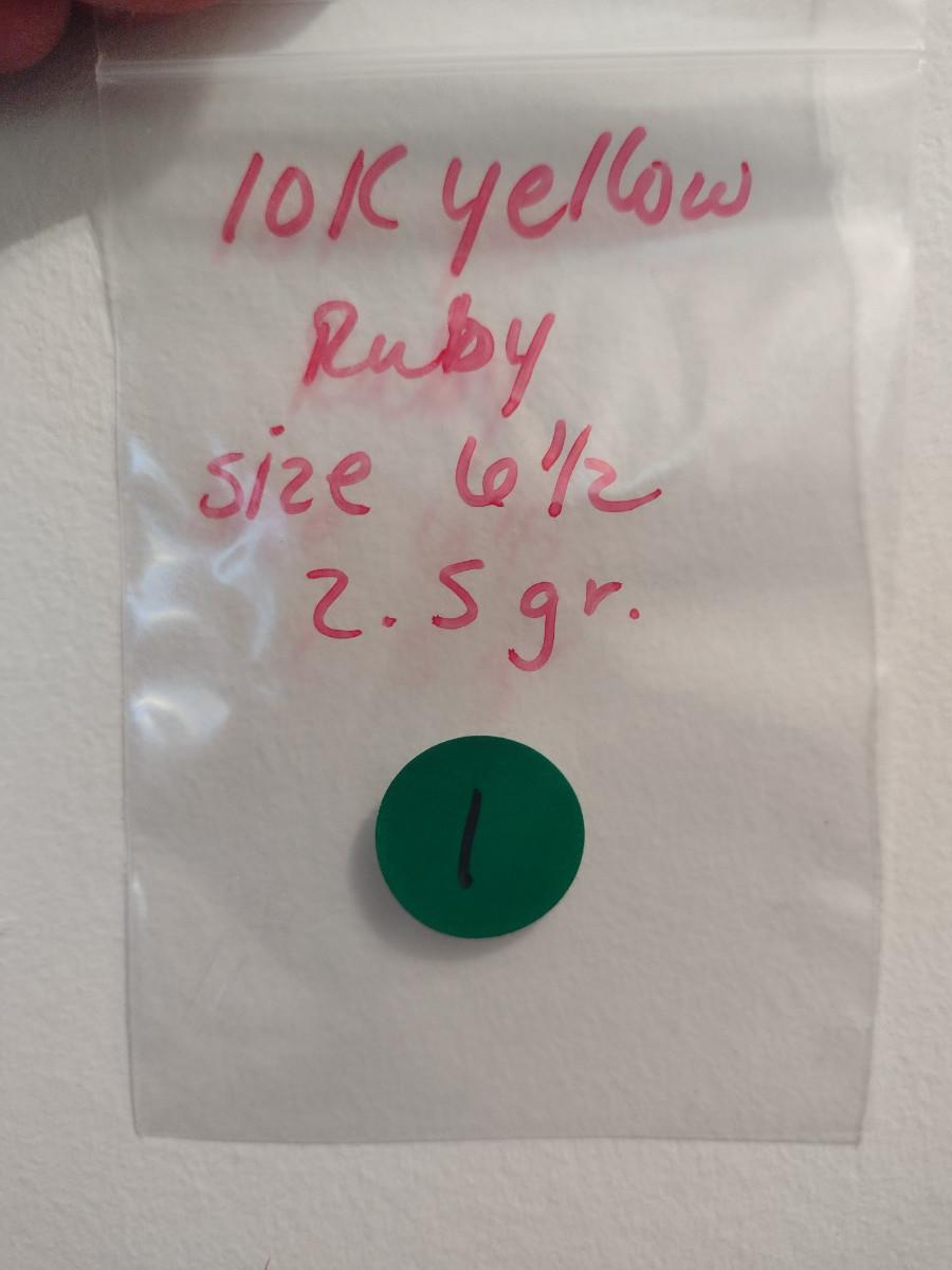 10 Karat Yellow Gold and Gemstone Ring- Approx Size 6 1/2 and Total Weight 2.5 Grams (#1). Stone is possibly a ruby.