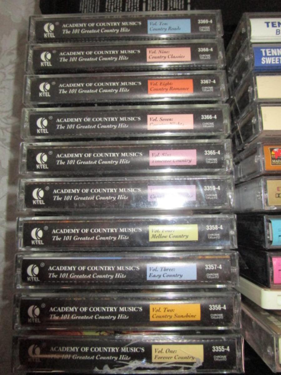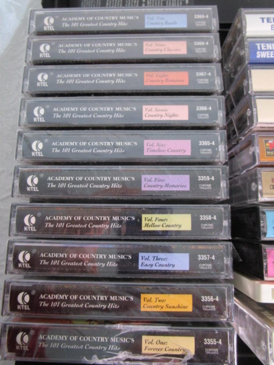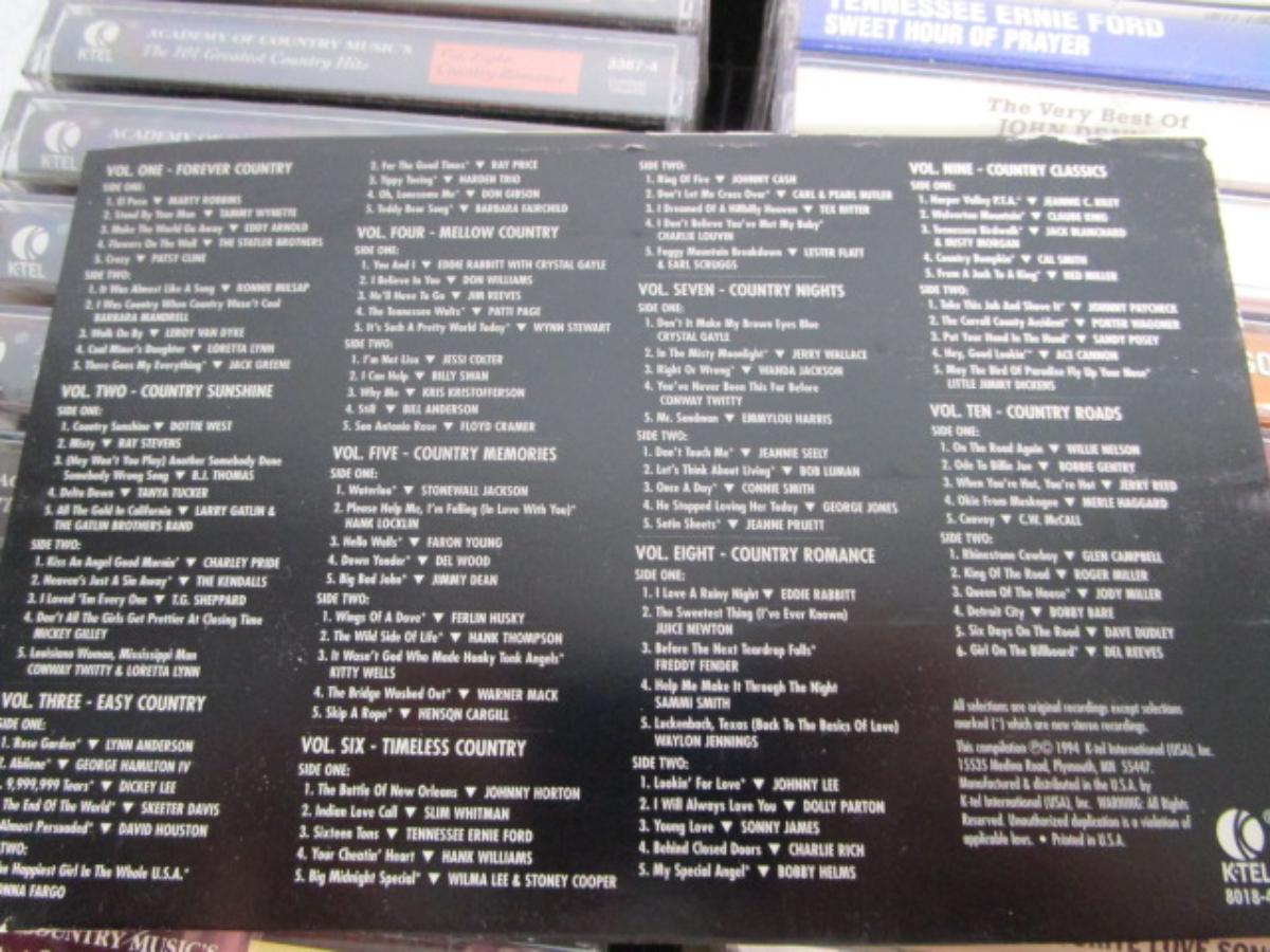 10 K-Tel Academy of Country Music Vol 1-10, 9 country, 1 Neil Diamond cassette tapes in case
