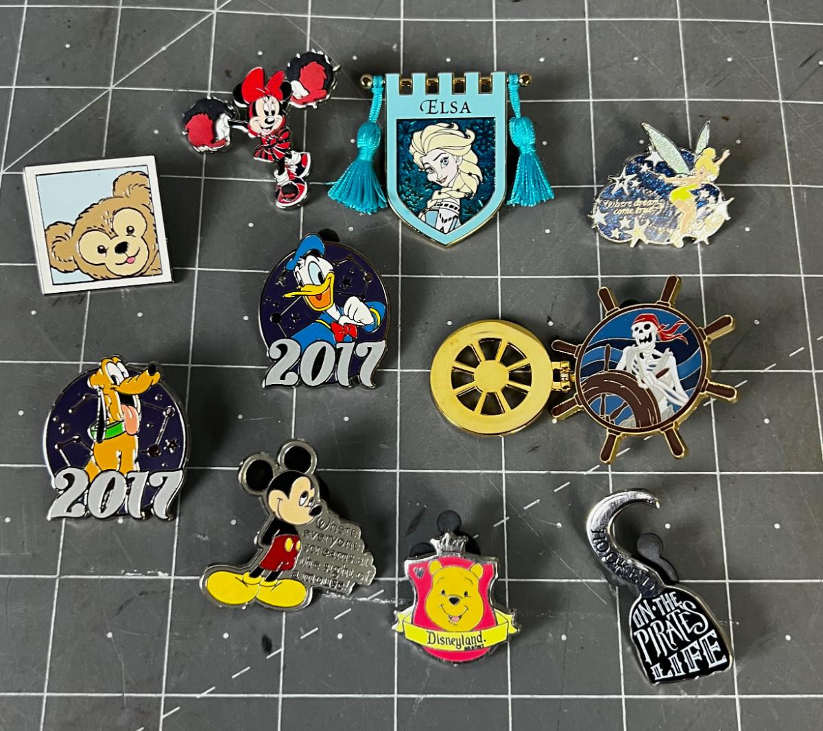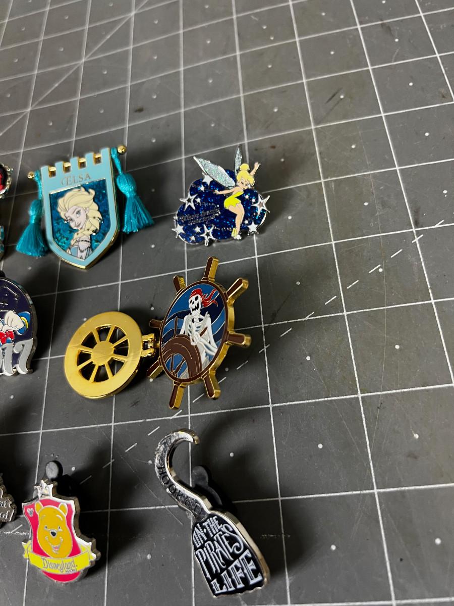 10 Loose Disney Pins: Tinkerbell, Mickey Elsa