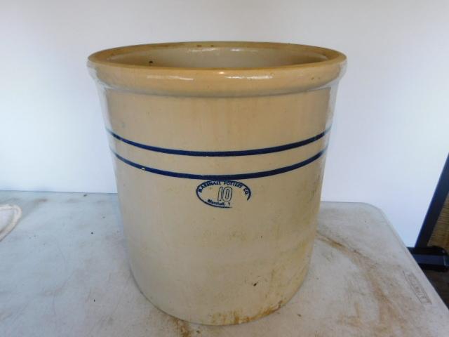#10 Marshall Pottery, TX Ceramic Crock has some hairline cracks as pictured