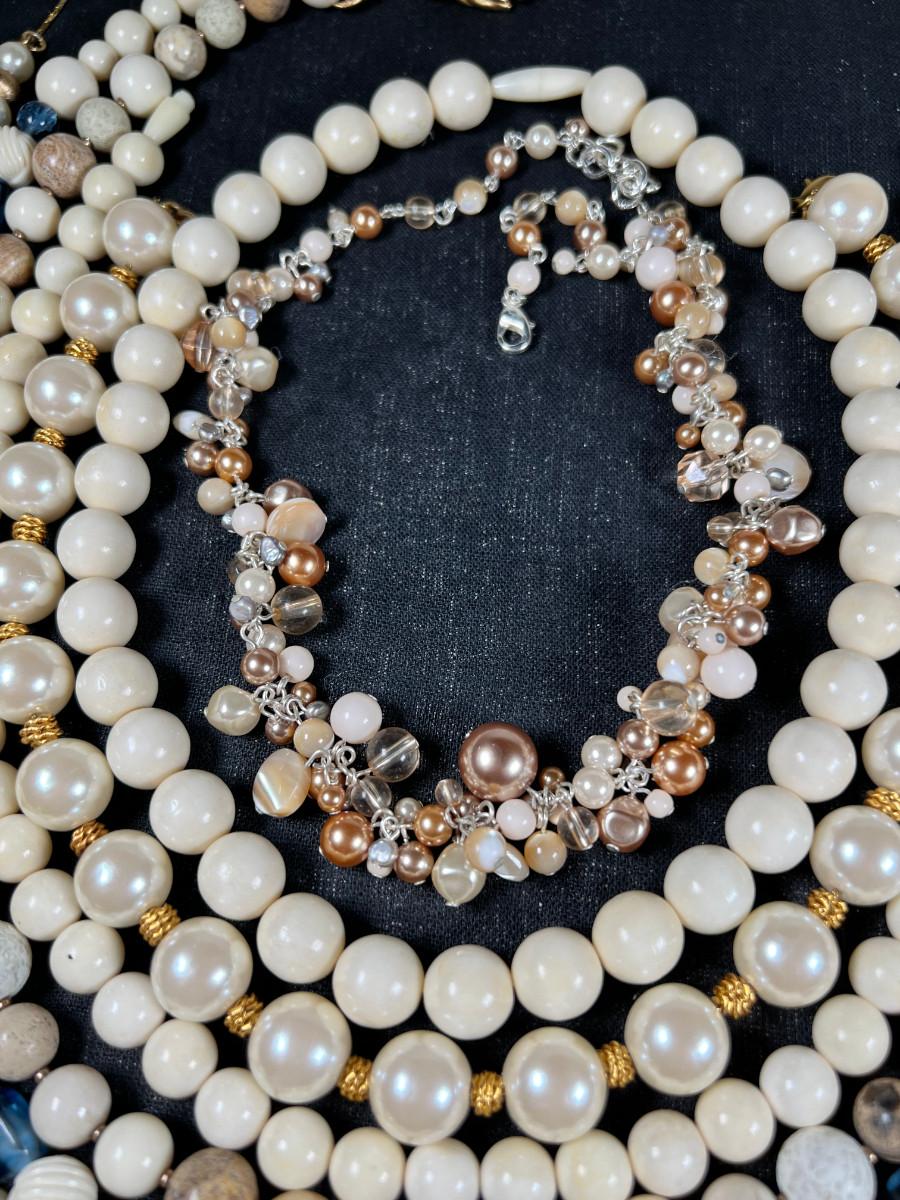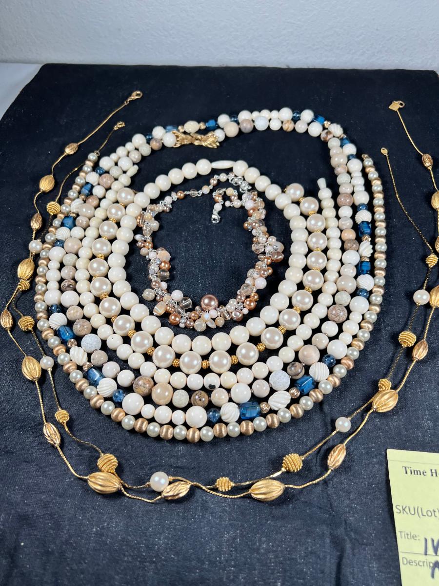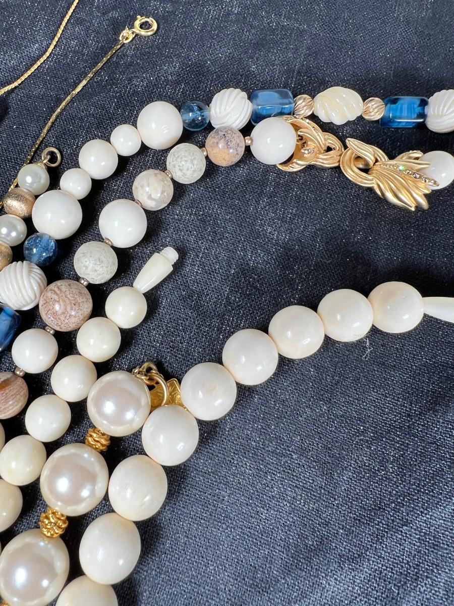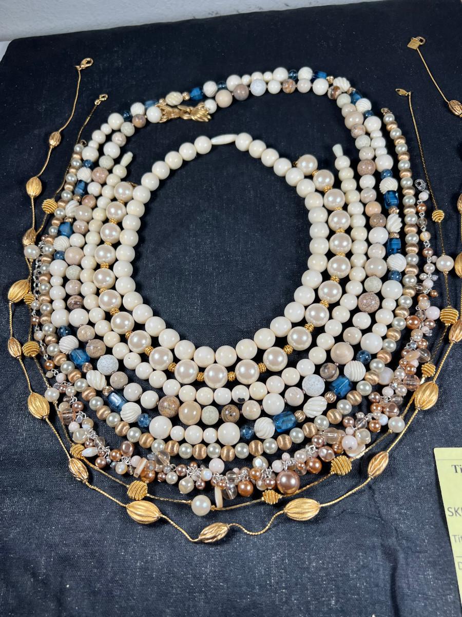 Stung bead necklaces, Ann Klein, metal and pearls.