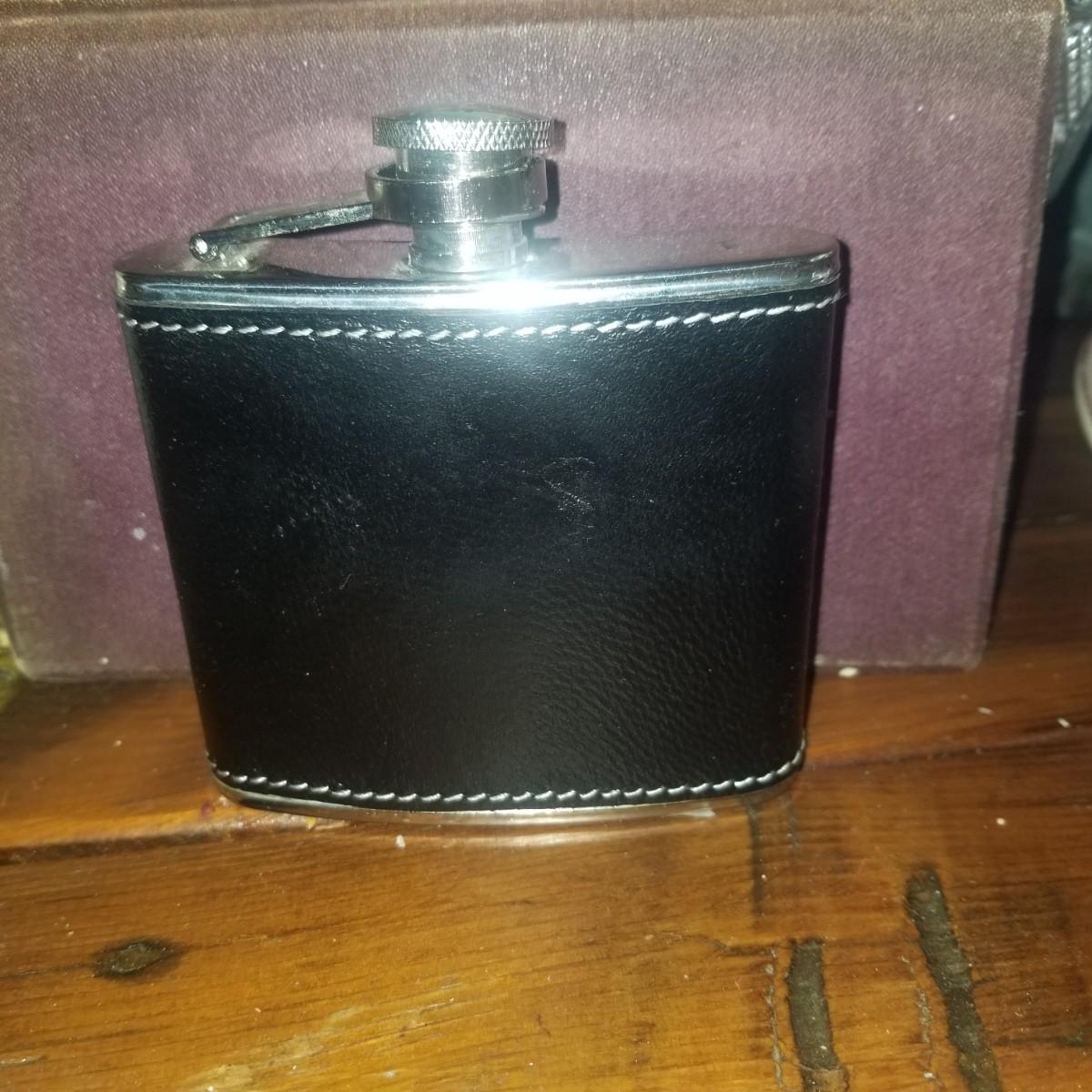 nice condition 10 oz chrome stainless steel flask leathet vovrr