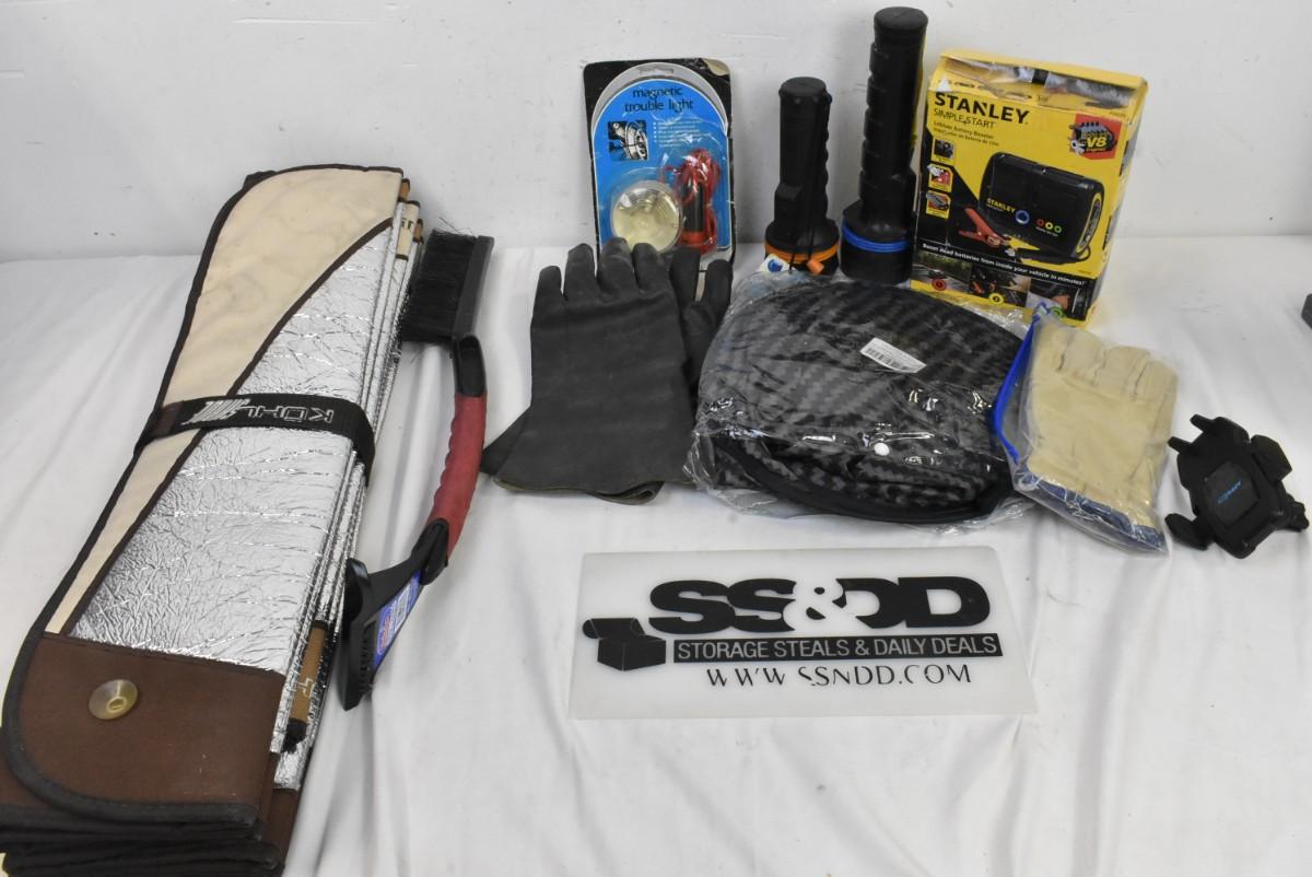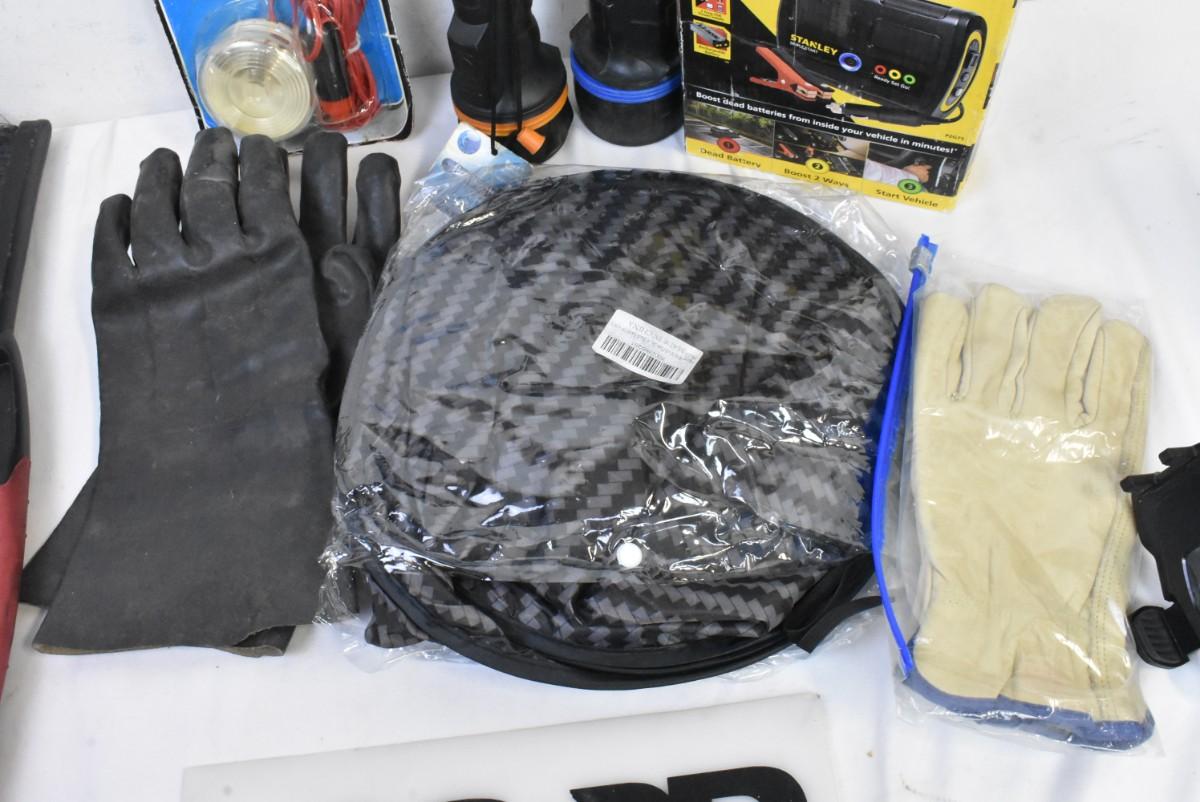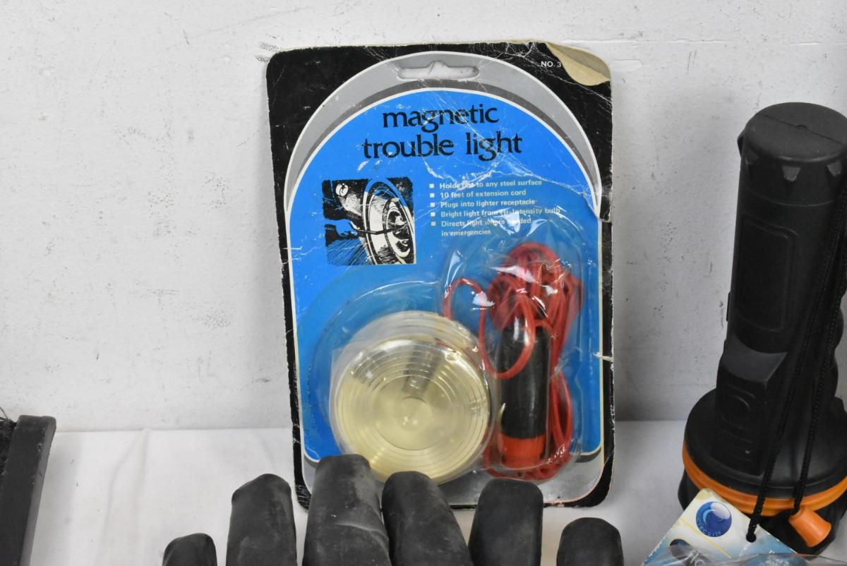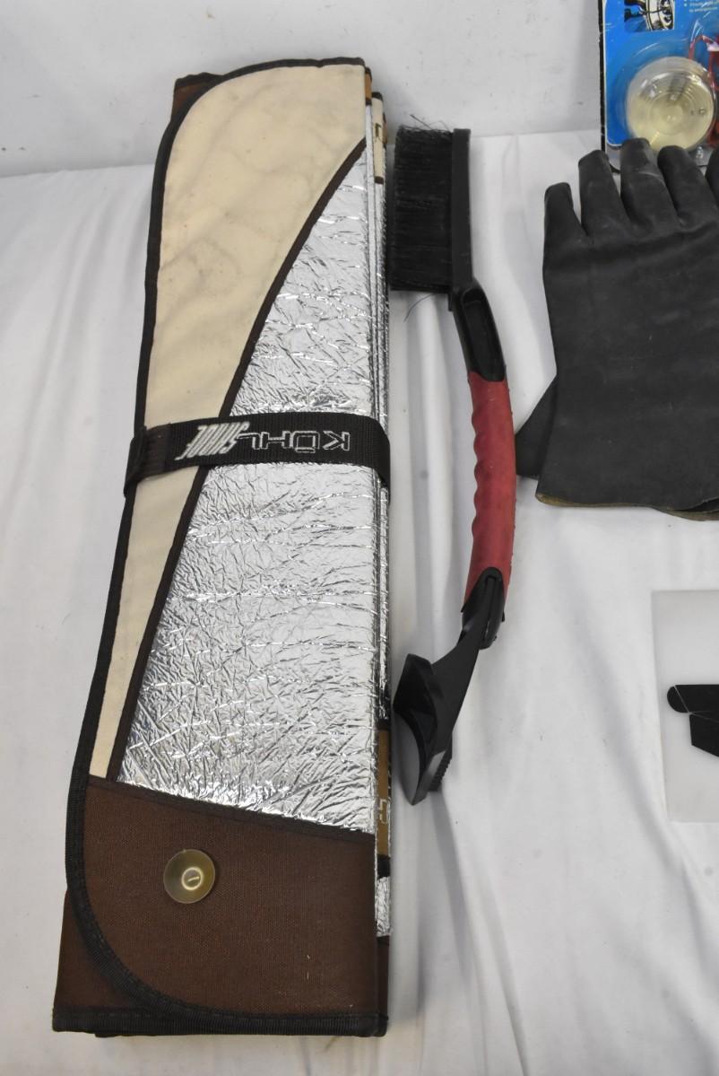 10 pc Automotive Lot: Magnetic Trouble Light, Sun Shield, Gloves