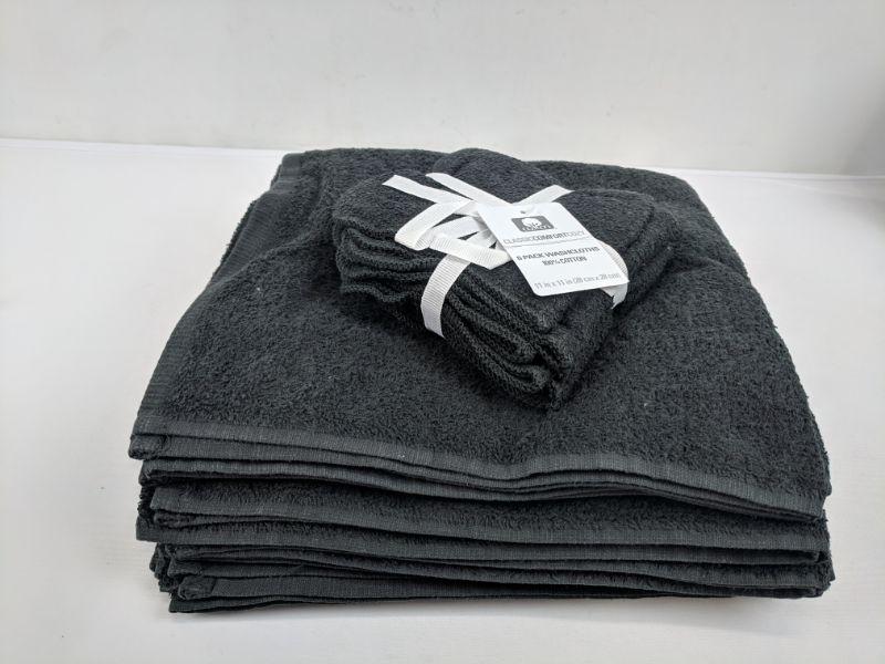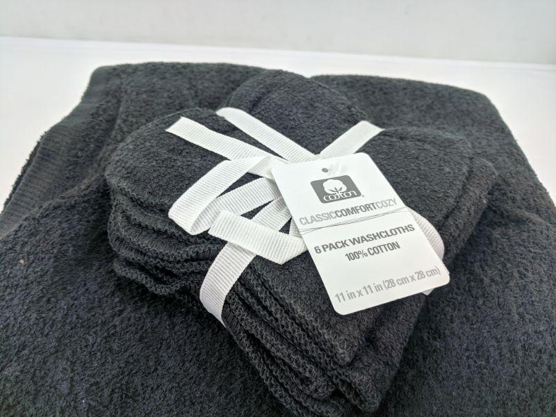 10 Pc Black Towel Set, 4 Bath Towels & 6 Washcloths - New