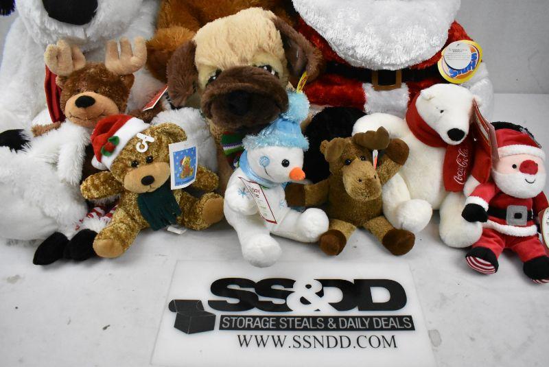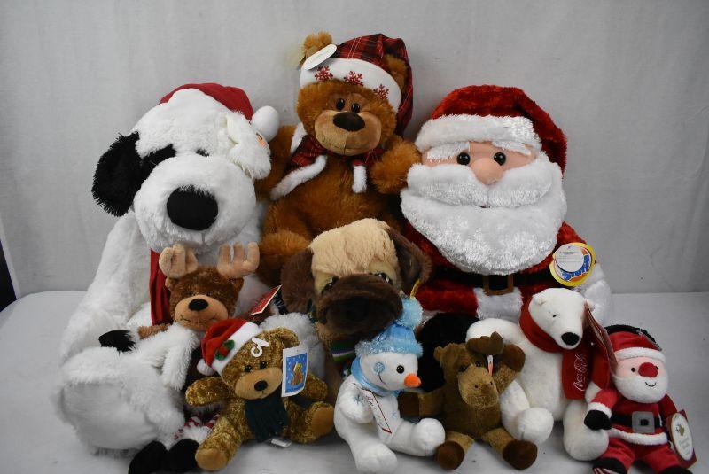 10 pc Christmas Holiday Plush Stuffed Animal Toys - New