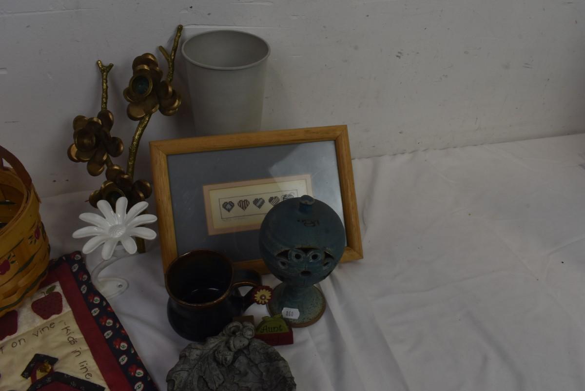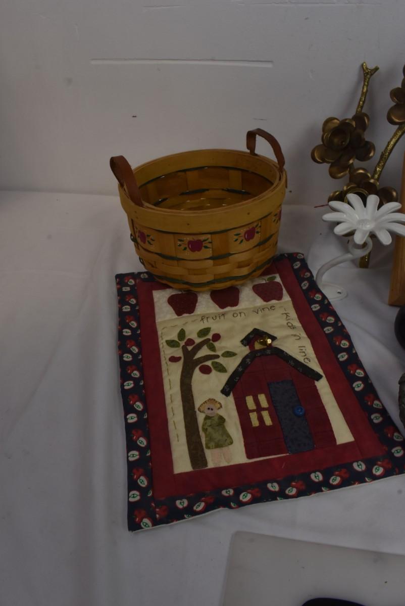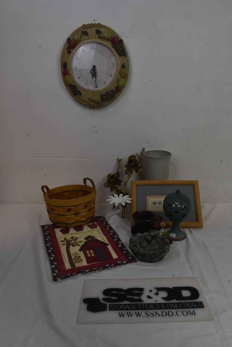 10 pc Decor Lot: Wall Clock, Picture Frame, Flower Decorations, Basket, etc