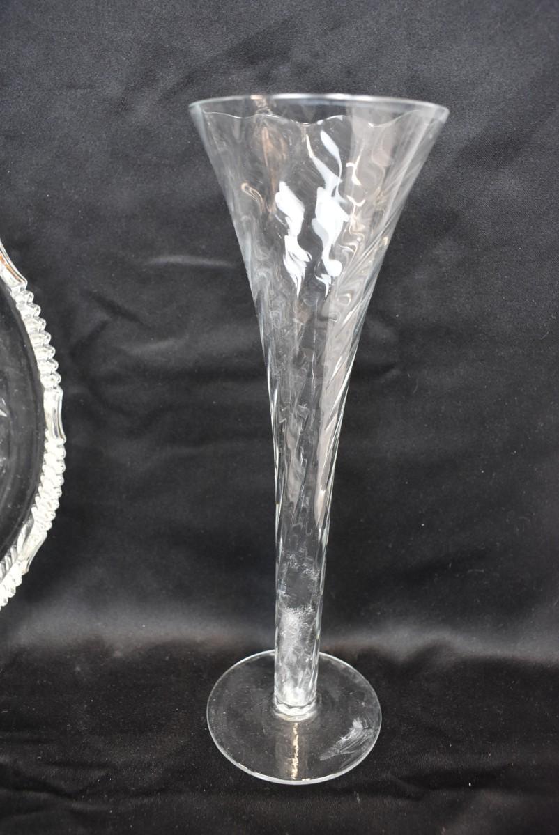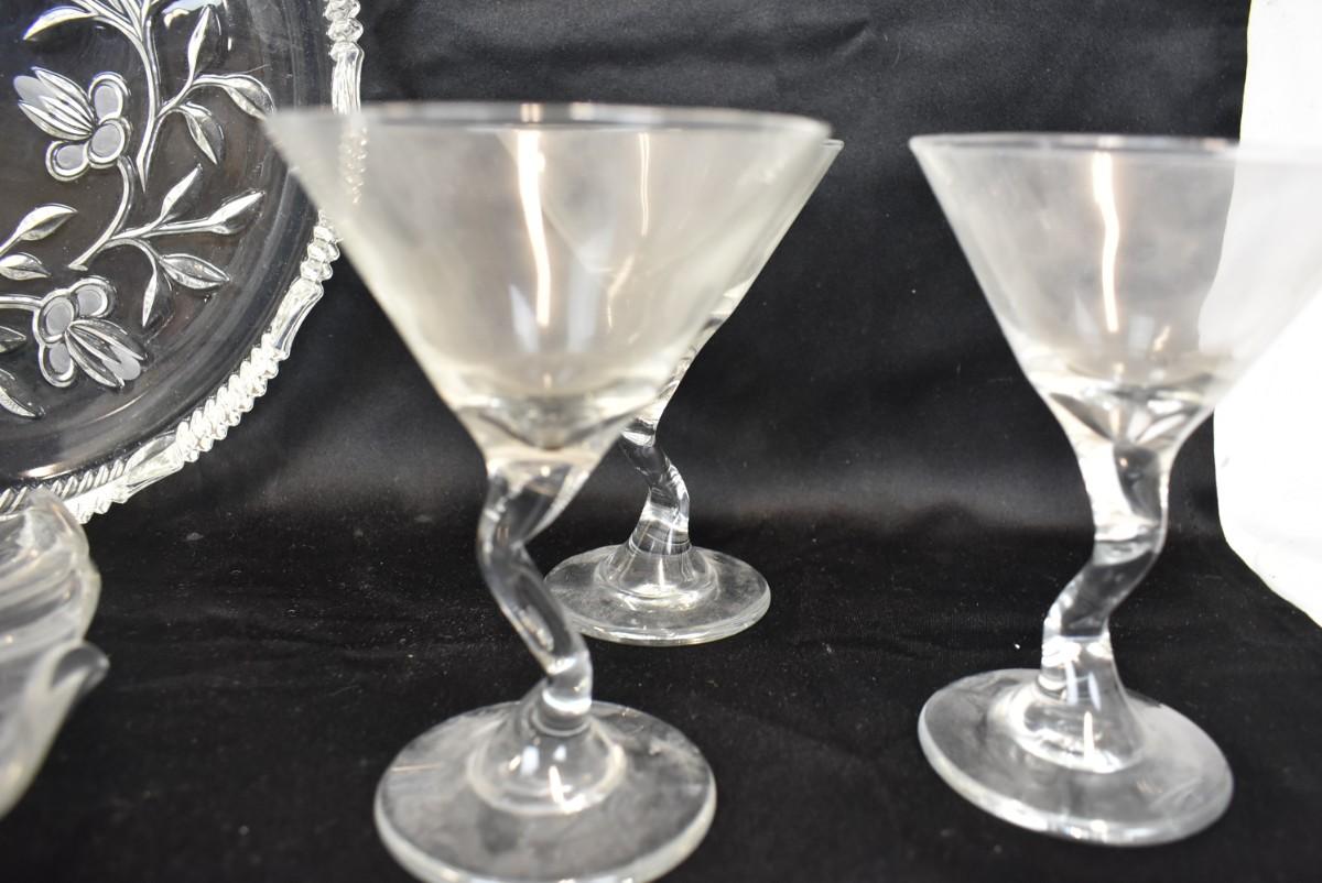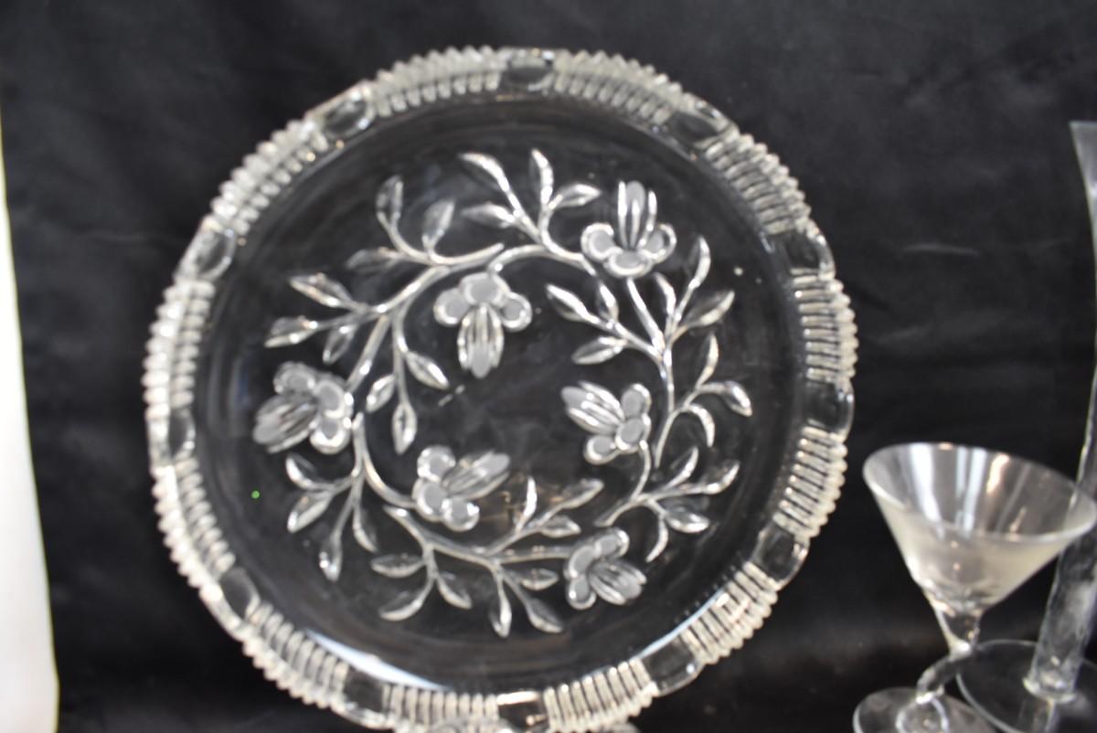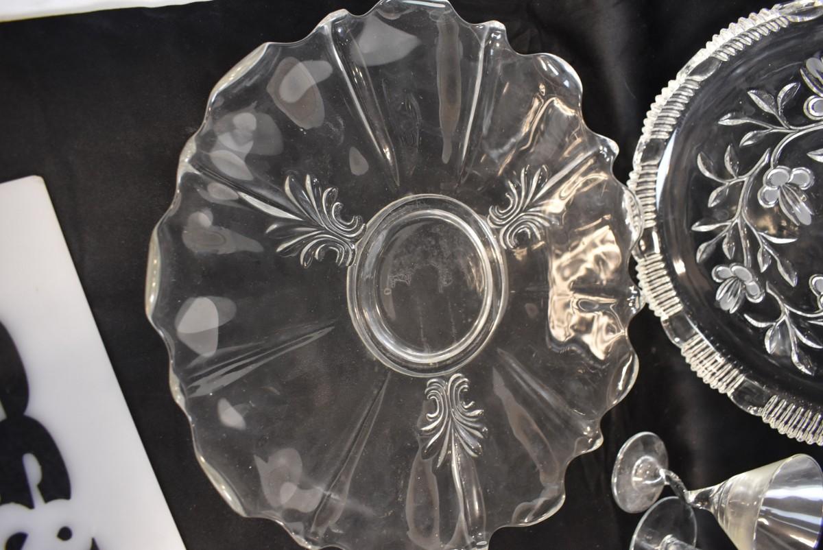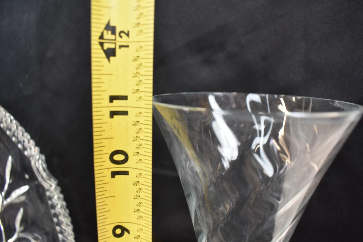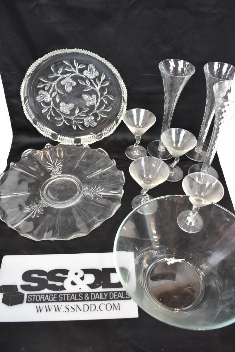 10 pc Glassware, 2 Platters, 1 Bowl, 4 Wonky Glasses, 3 Very Tall Glasses