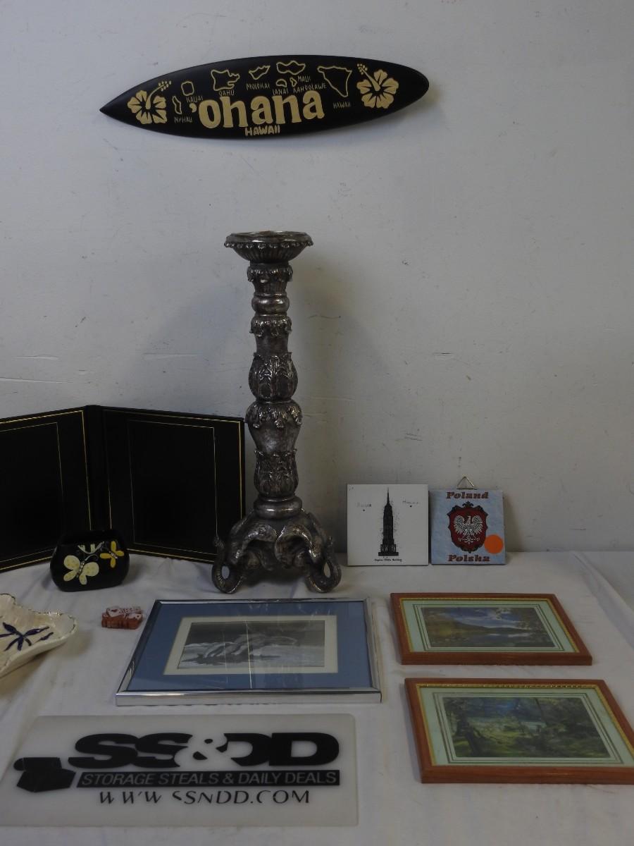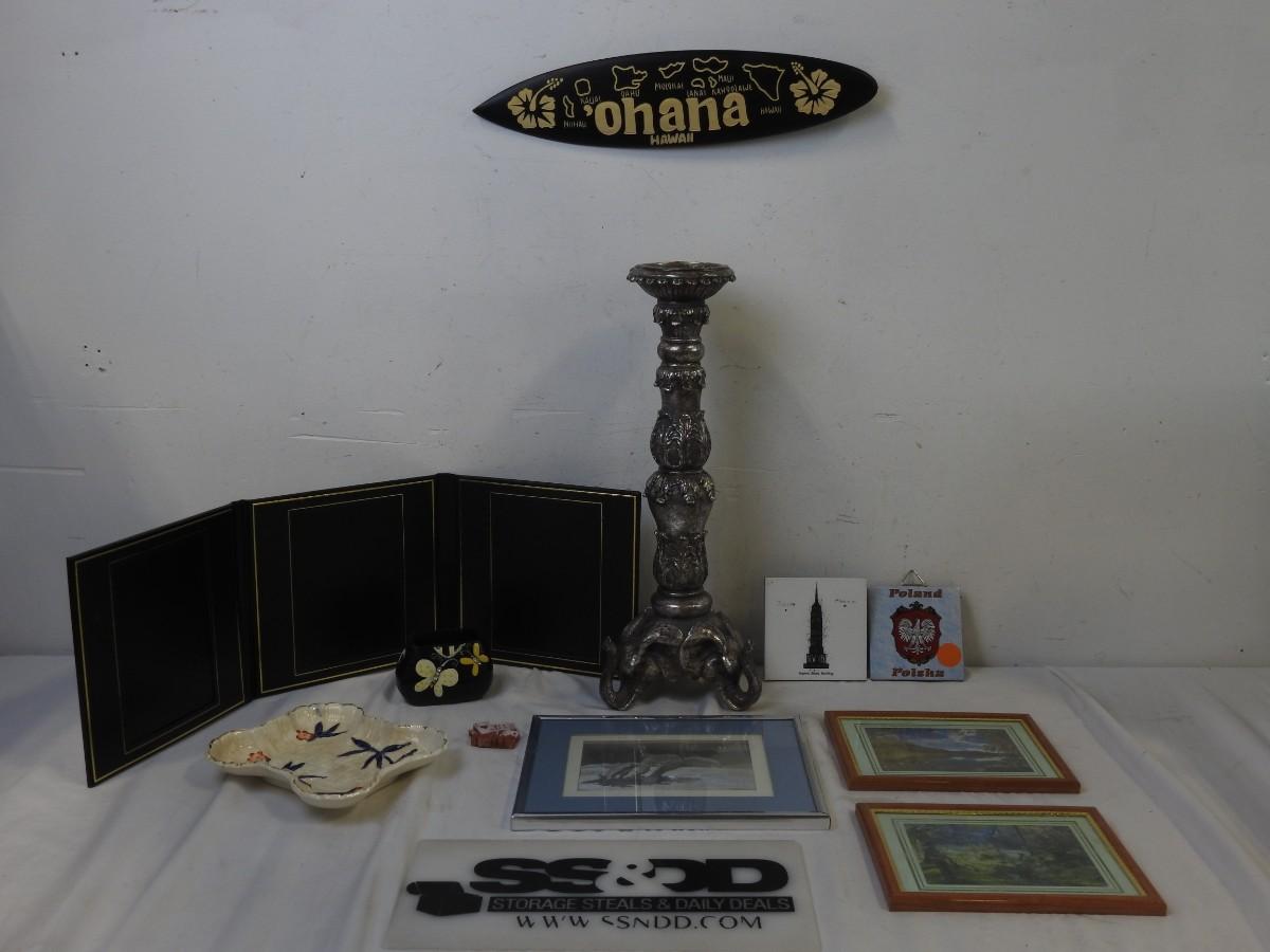 10 pc Home Decor: 3 Holographic Pics ,Elephant Base Candle Holder, 3 fold frame
