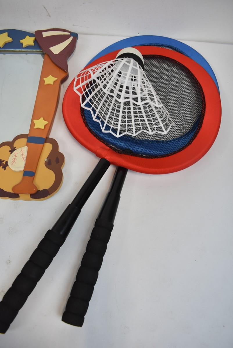 10 pc Kids Sports Lot: Toys & Framed Mirror Decor