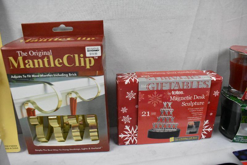 10 pc Misc Christmas Decor: Bears & Star Figurine, Candles, Mantle Clips - New