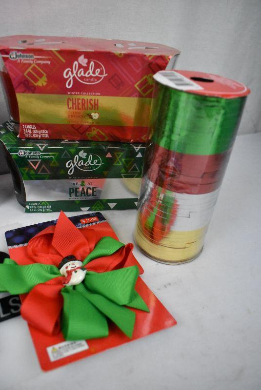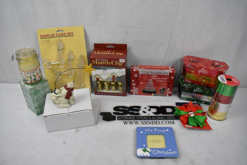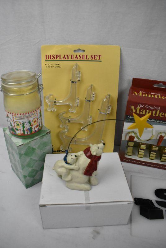 10 pc Misc Christmas Decor: Bears & Star Figurine, Candles, Ribbon, Easels Set, Mantle Clips, etc - New