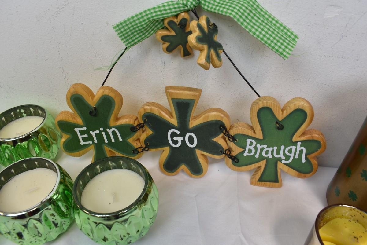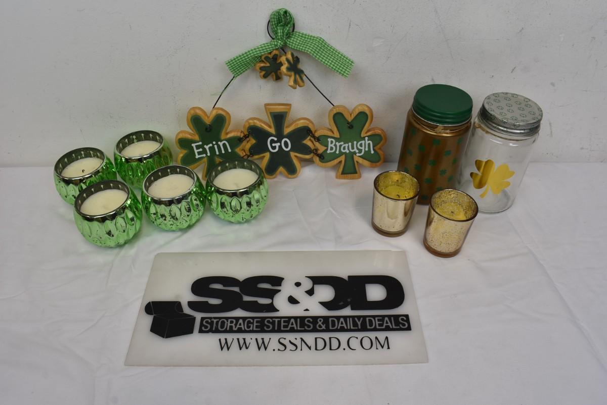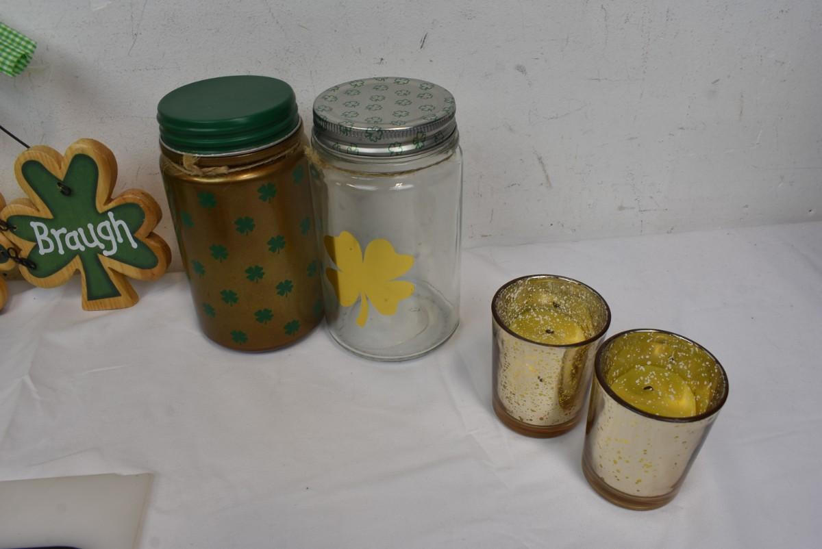 10 pc St. Patrick's Day Decor: Candles, Wall Hanging, Jars