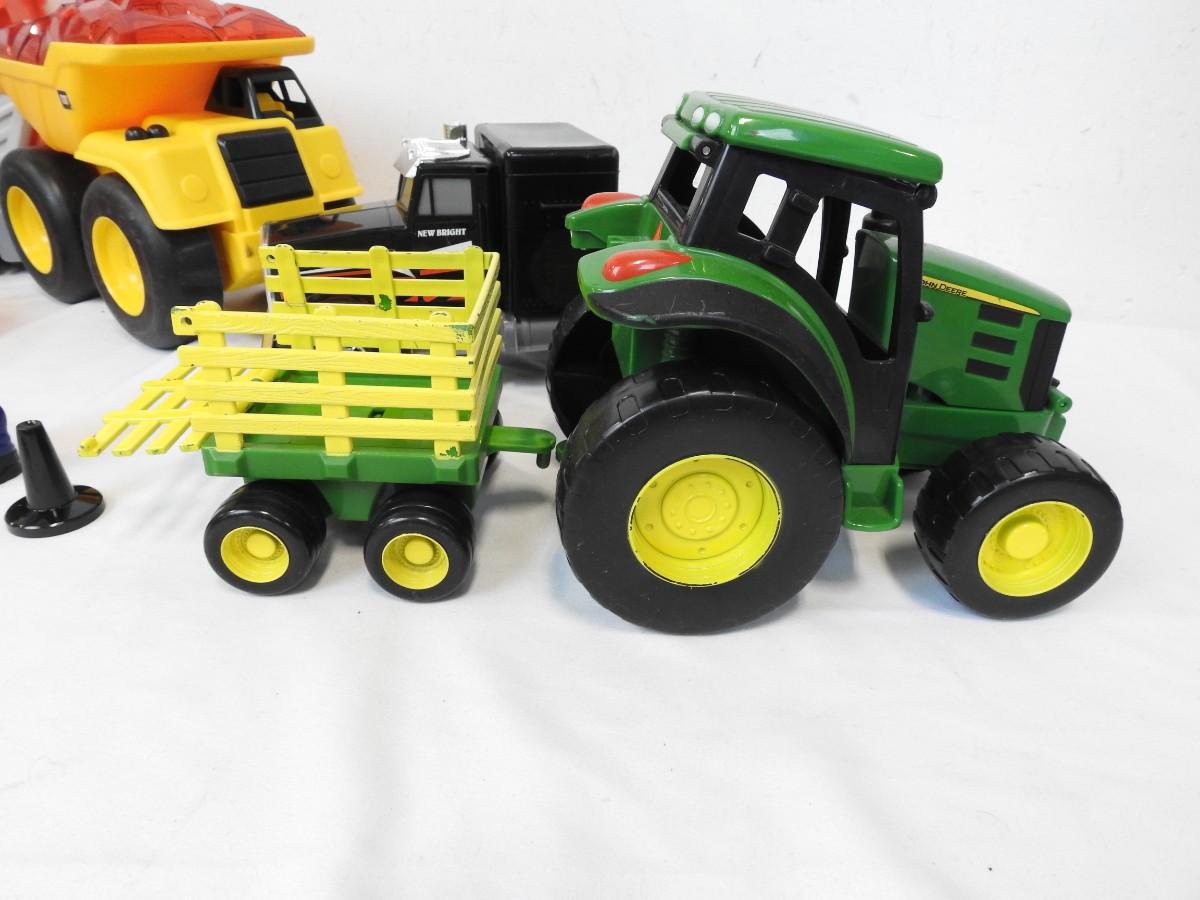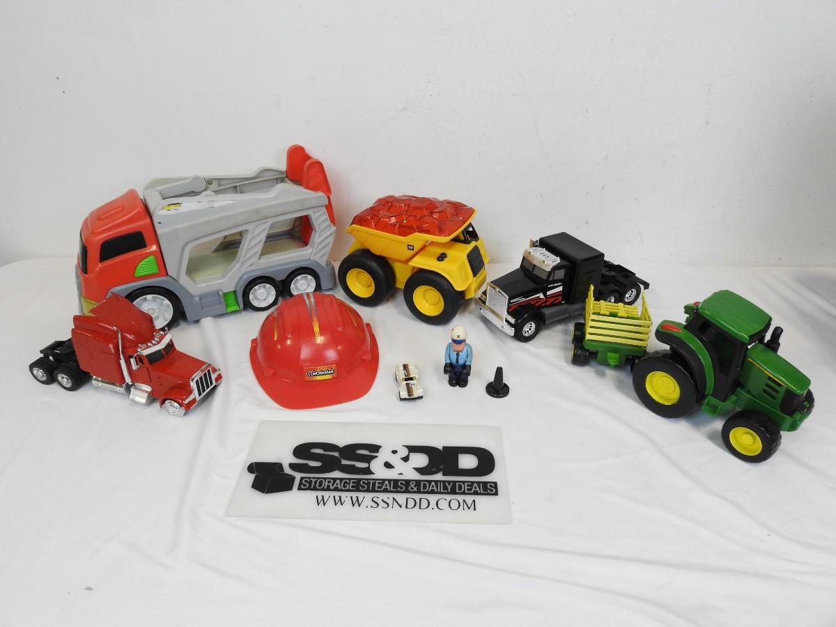 10 pc Vehicle Toys: CAT Dump Truck, Semi Trucks, John Deere Tractor & Trailer