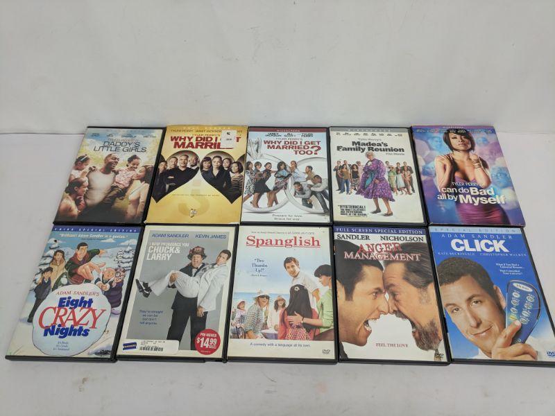 10 PG-13 DVD's, 5 Tyler Perry's DVD's, 5 Adam Sandler DVD's