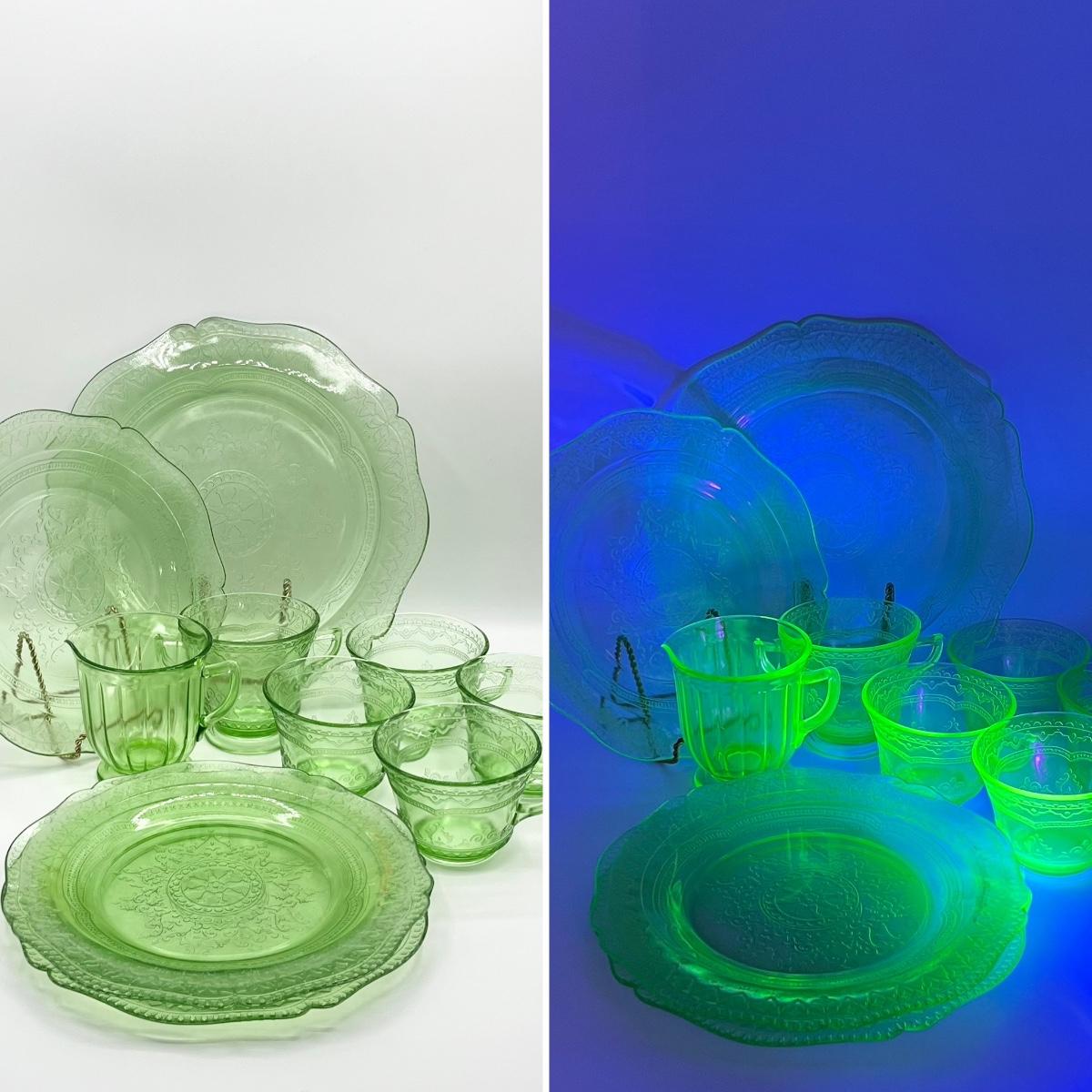 10 Piece Assortment Of Vtg. Uranium Vaseline Glass