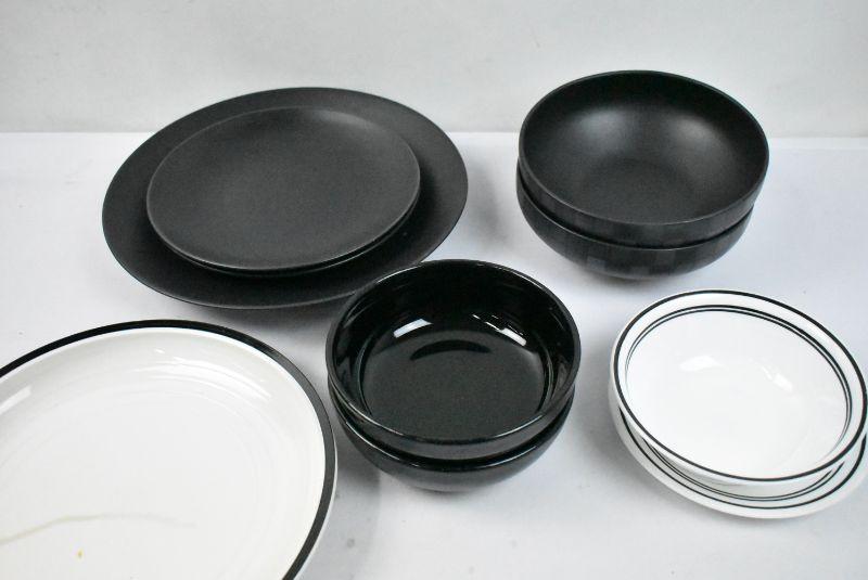 10 Piece Black & White Dishes: 2 Small Platters, 3 Small Plates, and 5 Bowls