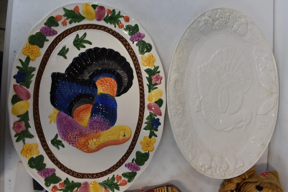 10 Piece Fall Holiday Lot, Two Turkey Plates, One Unpainted