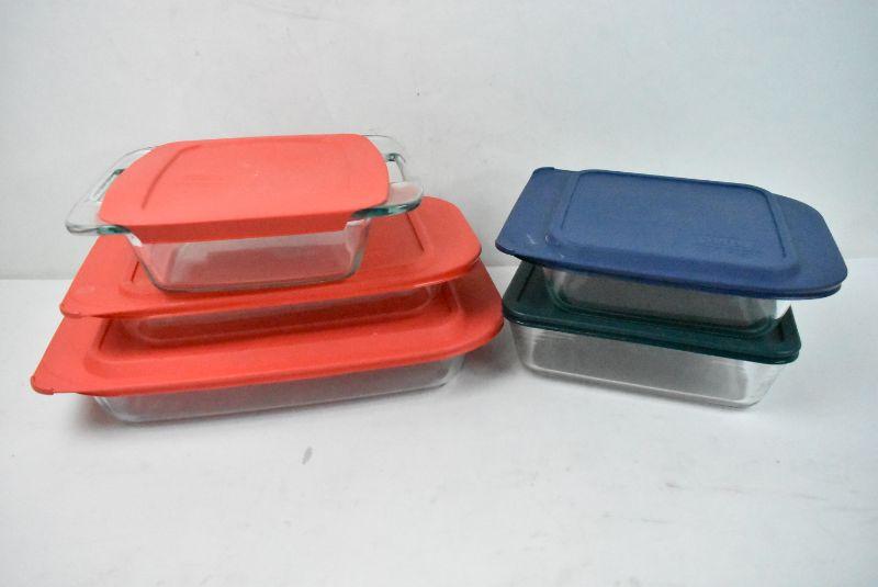 10 Piece Pyrex: 5 Glass Containers & 5 Plastic Lids