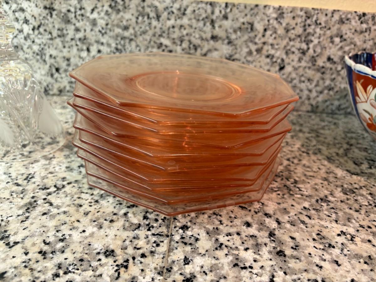 10 pink depression glass luncheon plates