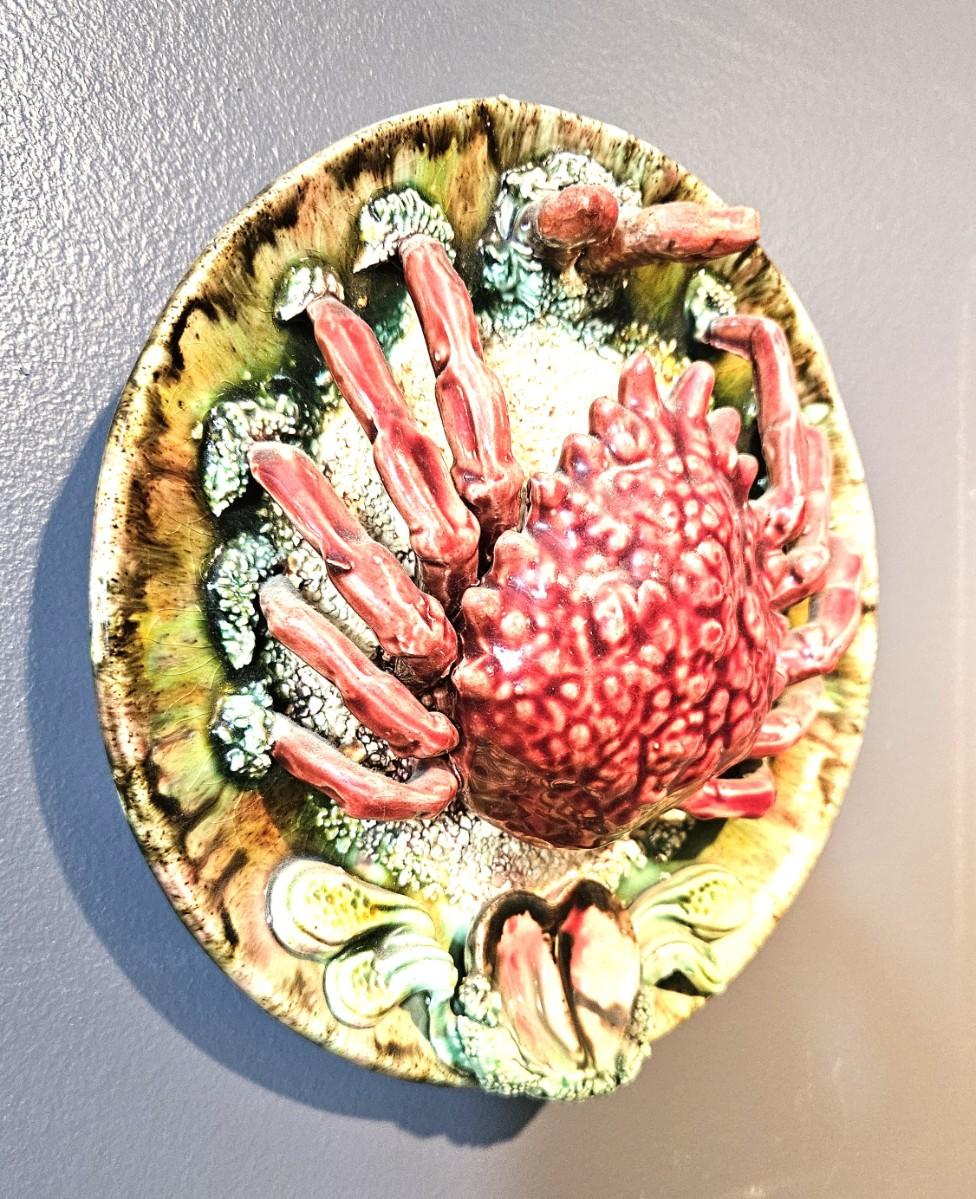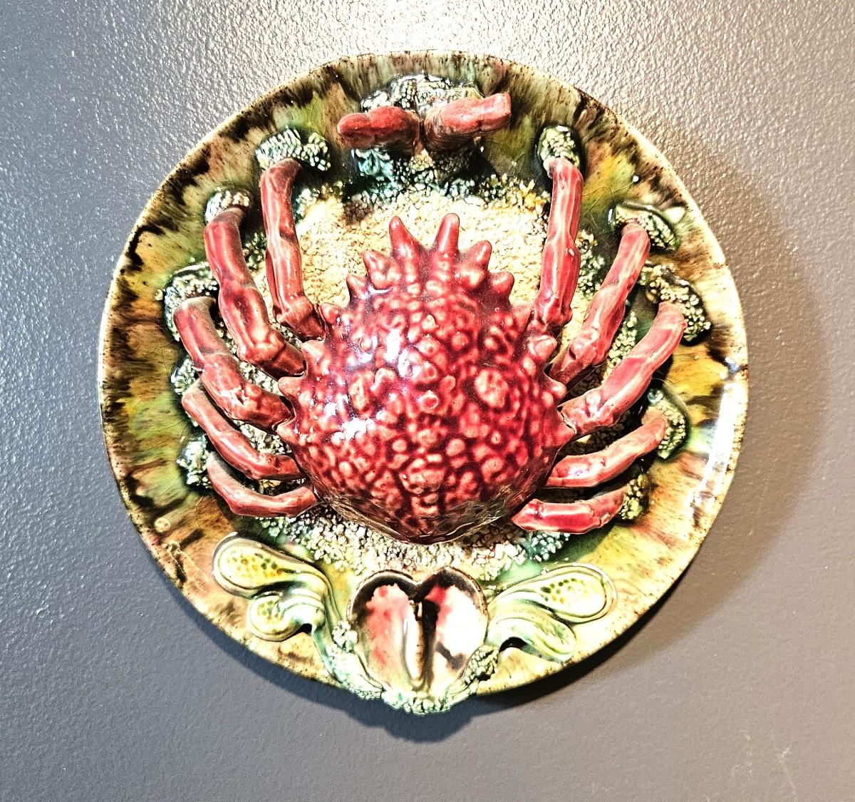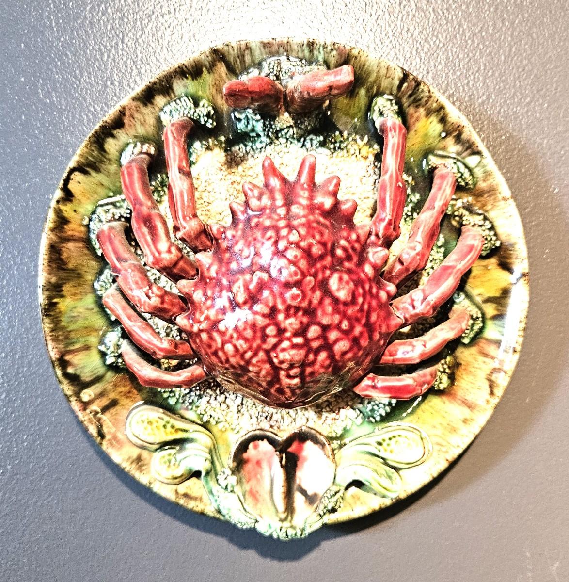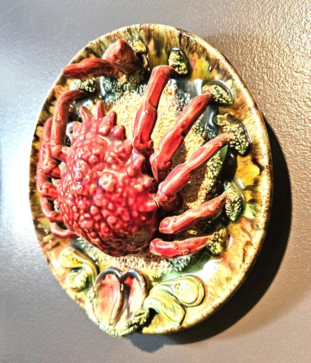 10' Rare Antique Portuguese Palissy Style Majolica Crab Plate