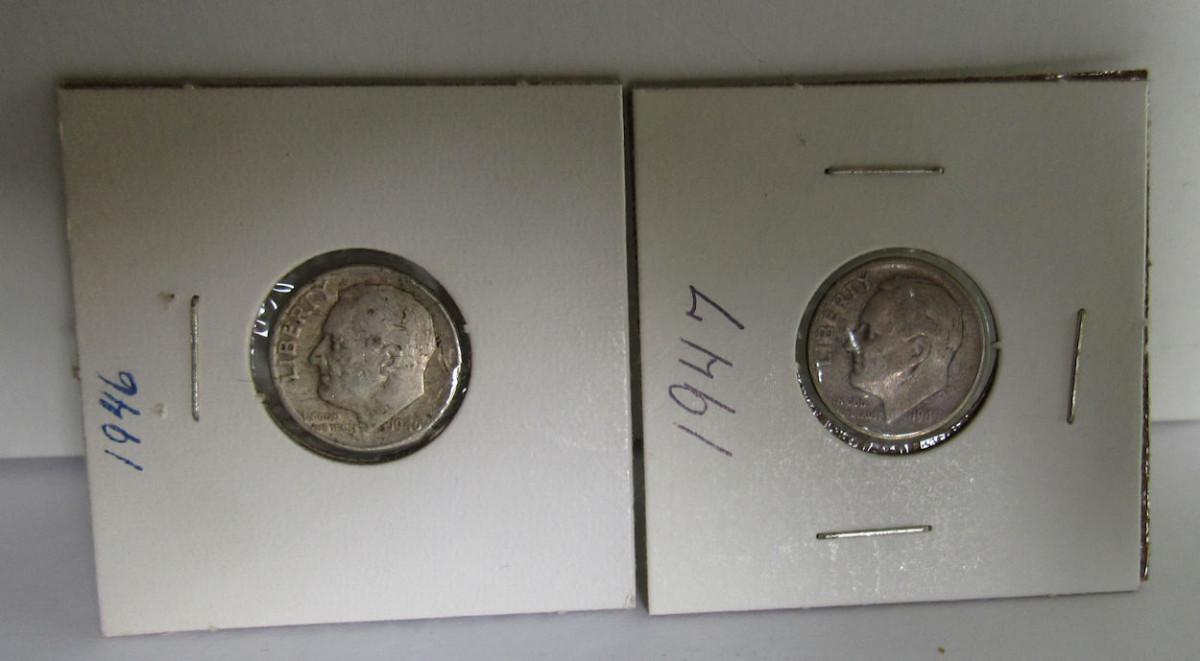 10 Silver Dimes: 1946 P, 1947 S, 1948 D (2), 1962 D (2), 1963 D, 1964 D (2), 1967 P