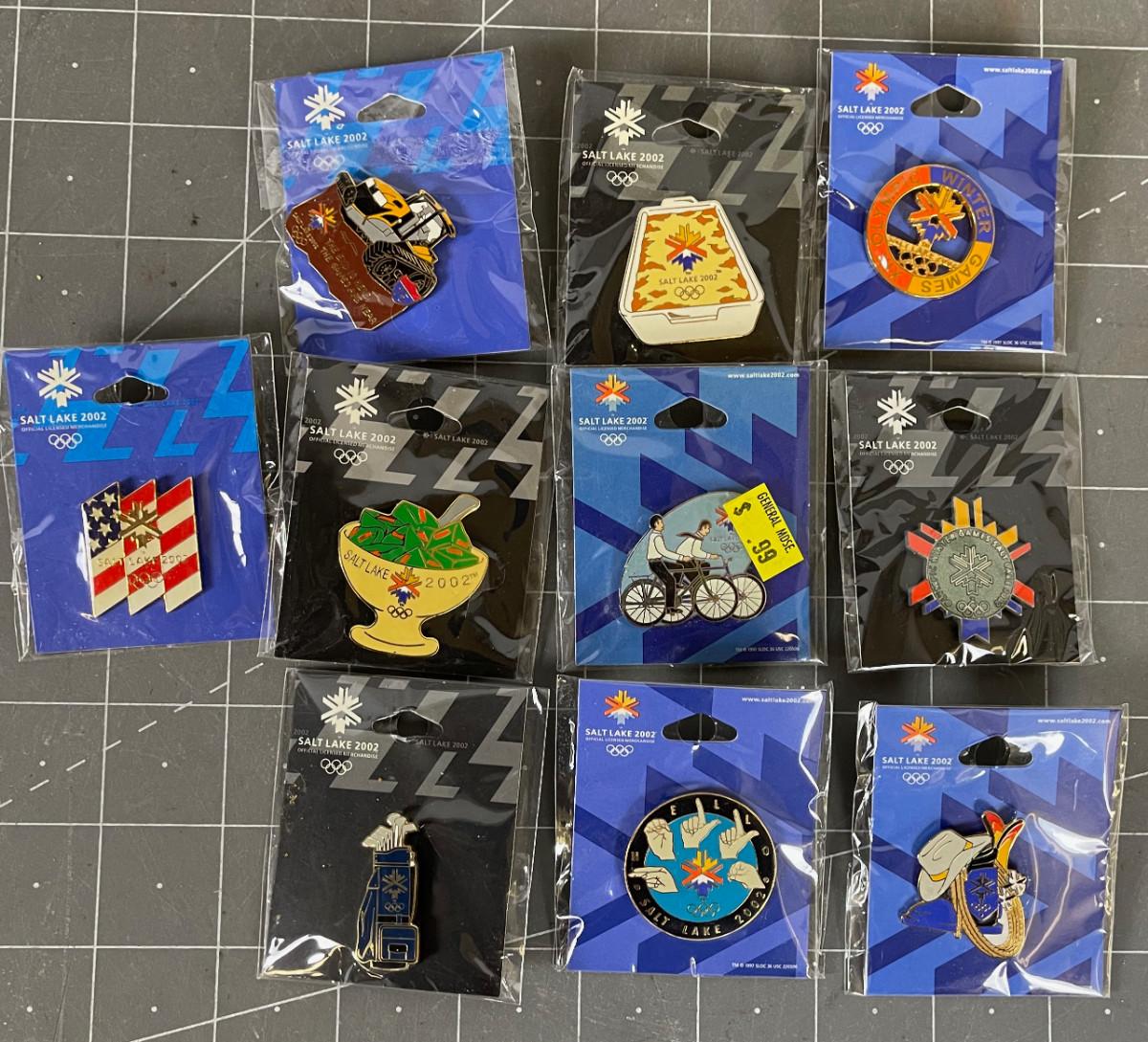 10 SLC Olympic Pins, New, Including Green Jell-O