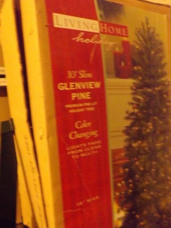 10' Slim Glenview Pine Prelit Tree - Living Home. Clear and multi-color. **Please read Terms and Conditions before placing a bid. Pick up is Sunday, September 1, 2019 from 10am to 4pm in Williamstown. All sales are final. All sales are as is, where is. Please review all photos. Any props included in photos are not included in listing. All measurements are approximate.