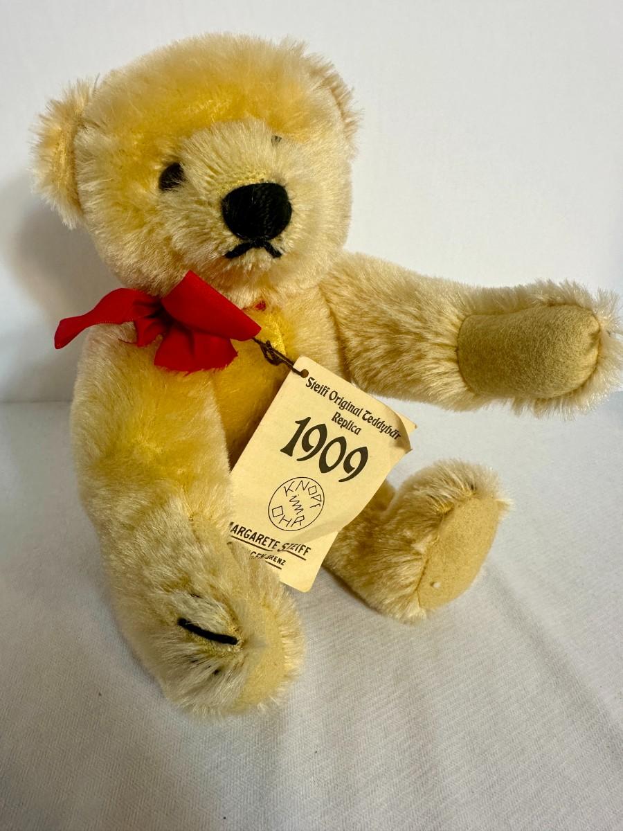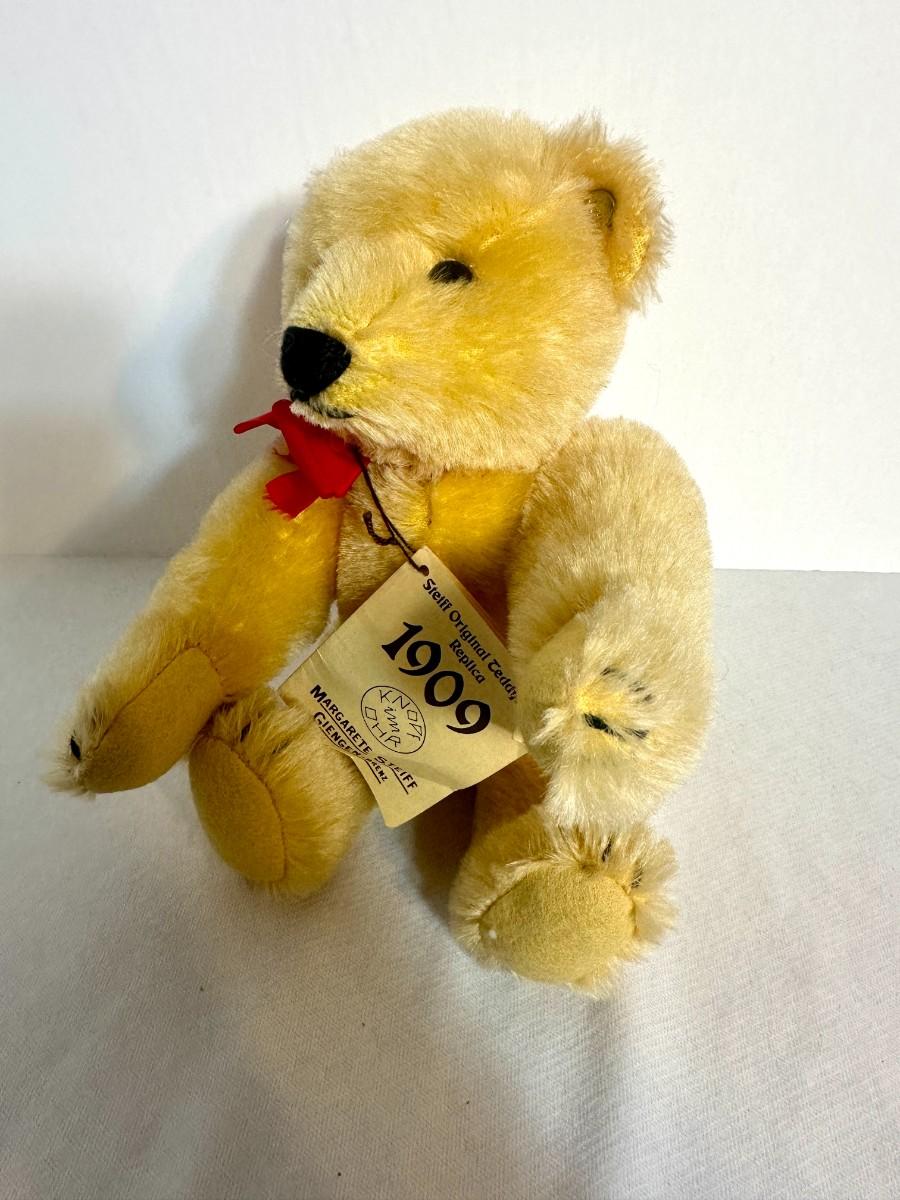 Vintage Steiff Original first jointed Teddy Bear replica. The first jointed bear was designed by Richard Steiff and became famously tied to Teddy Roosevelt.