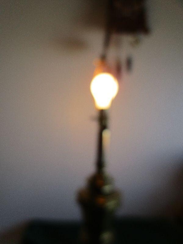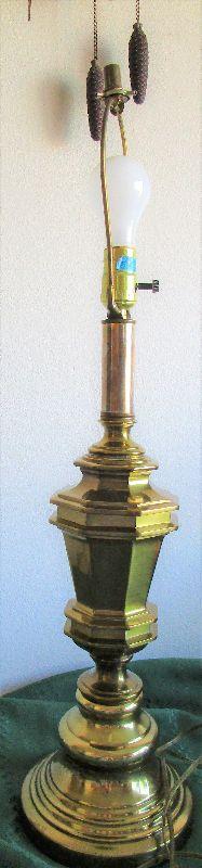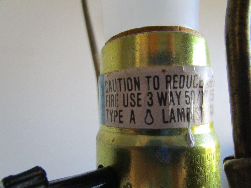 29" tall, Brass looking Stiffel style table lamp. No markings on lamp. Lamp has 3 way switch and it works