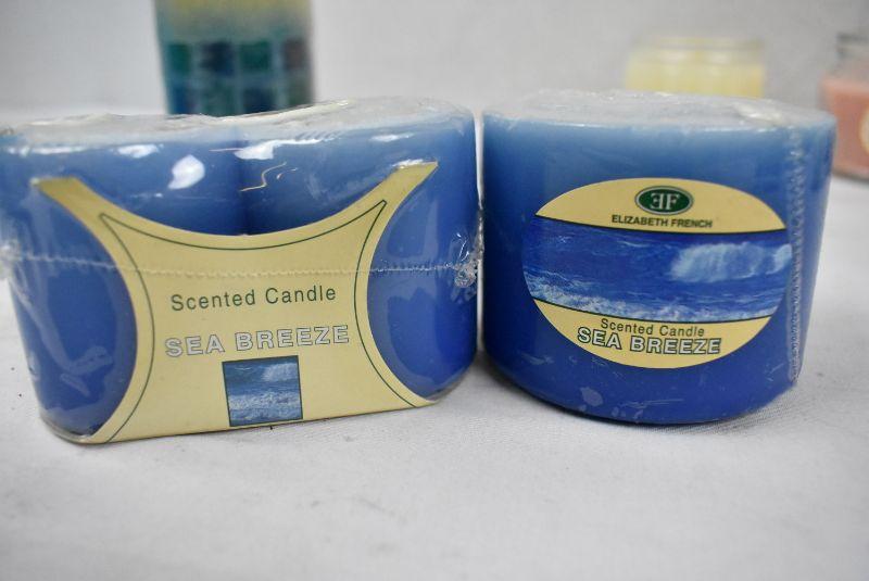 10 "Summer" Candles: 3 Sea Breeze, 2 Vanilla, 2 Peach, 2 Mulberry, 1 Kiwi - New