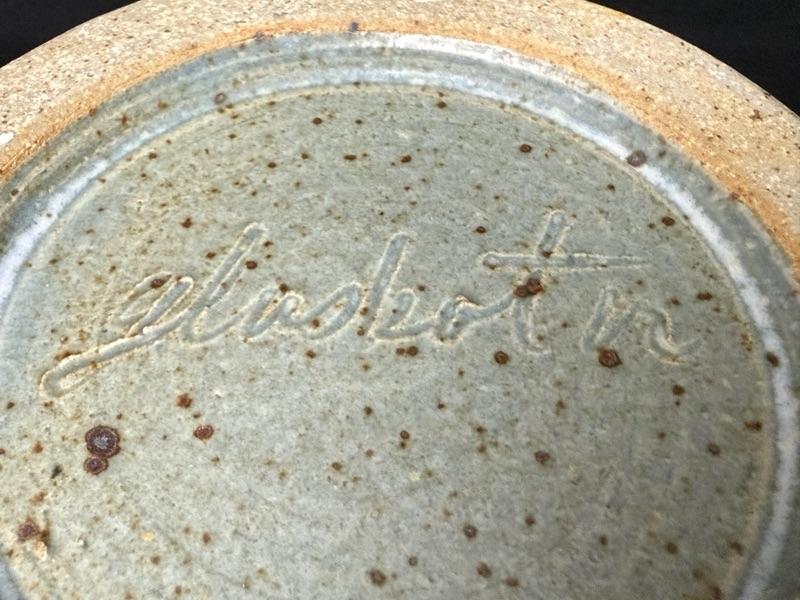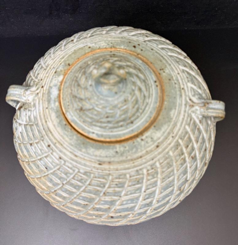 Very nice jar with lid - artist signed pottery. In person the color is more of a light blue/gray.