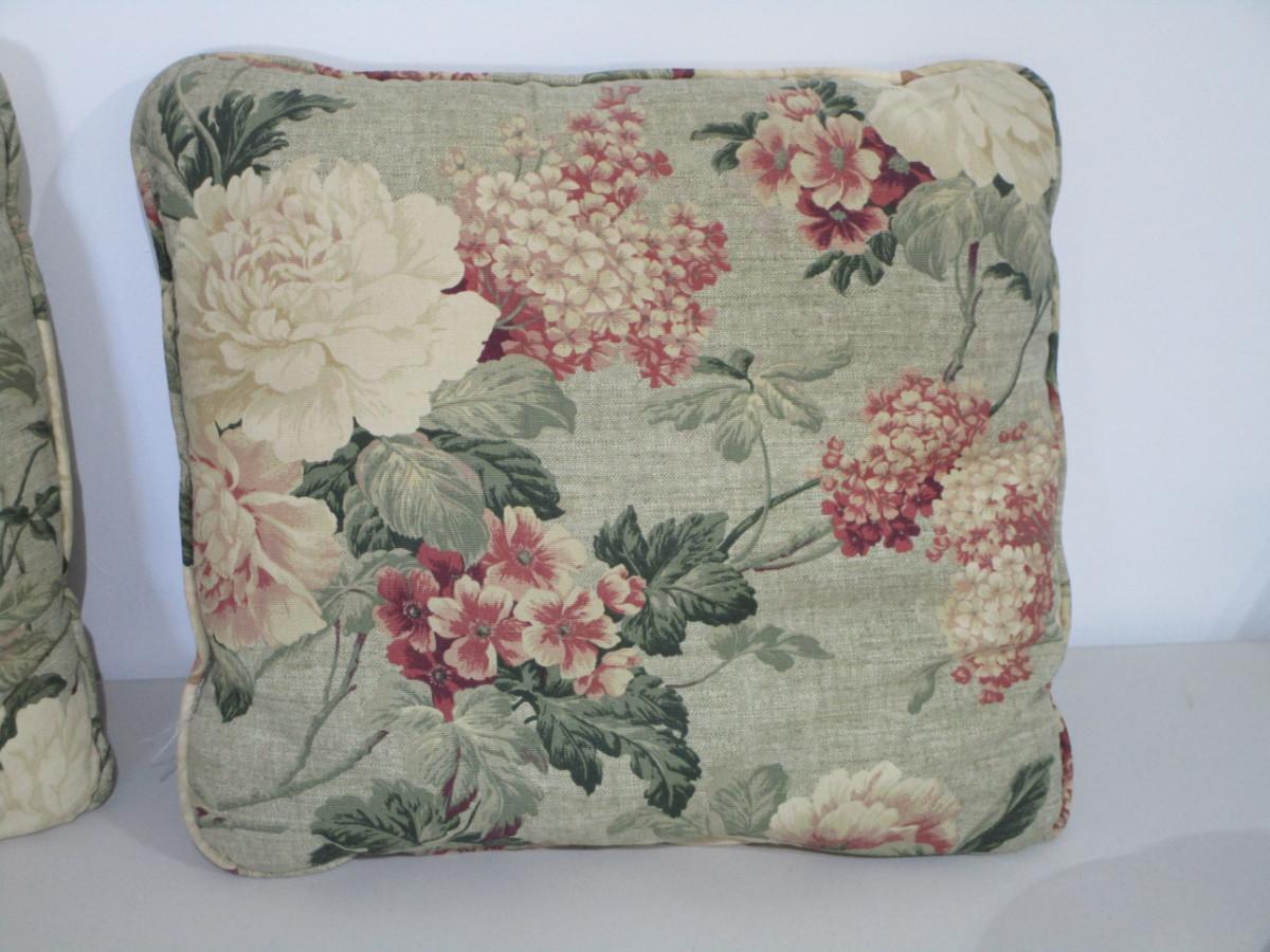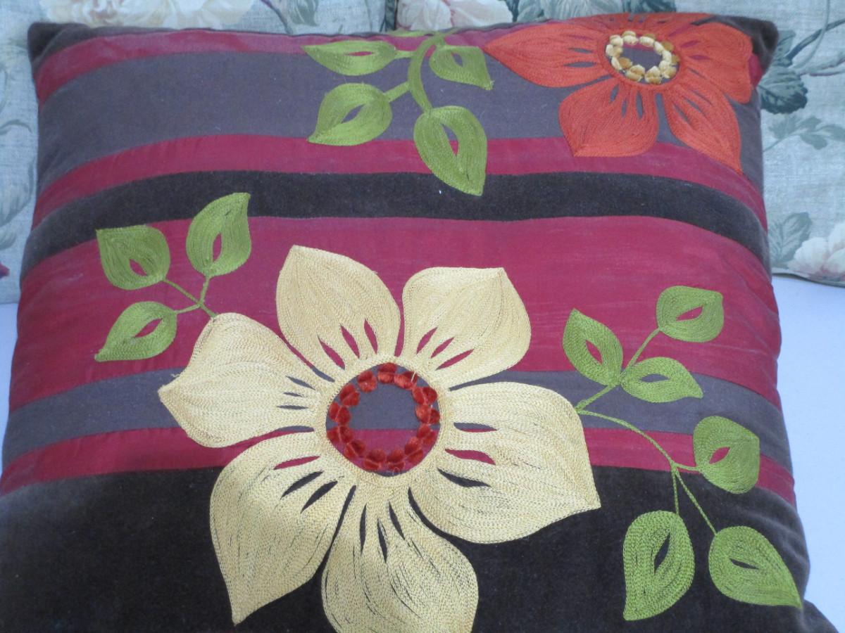 Two identical floral 15"x15", pillow with embroideried flowers 16"x16"