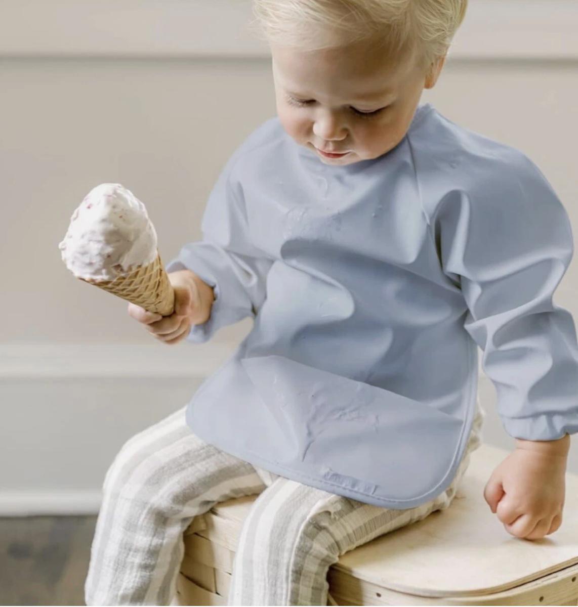 10 Units - Willow + Sim Long Sleeve Washable Baby Bob w/Food Catcher in Cloud Blue