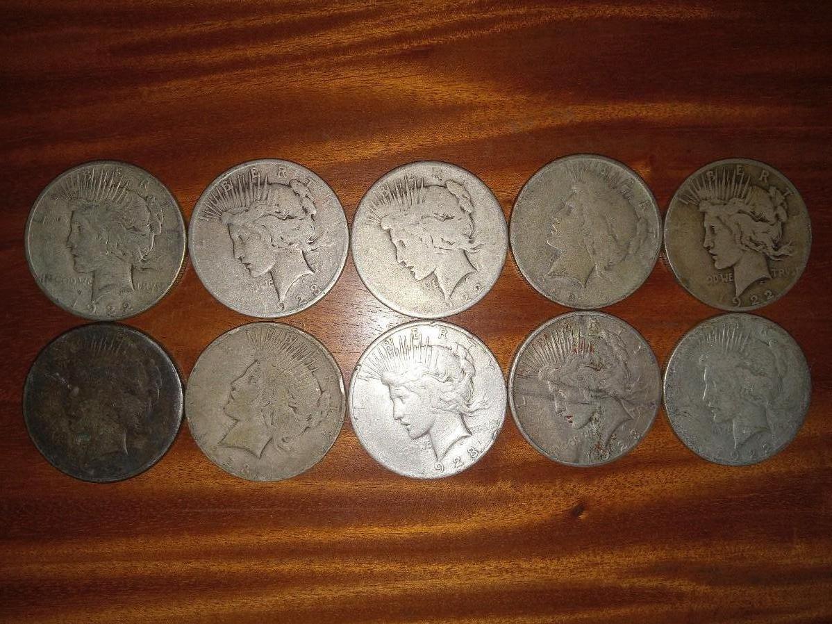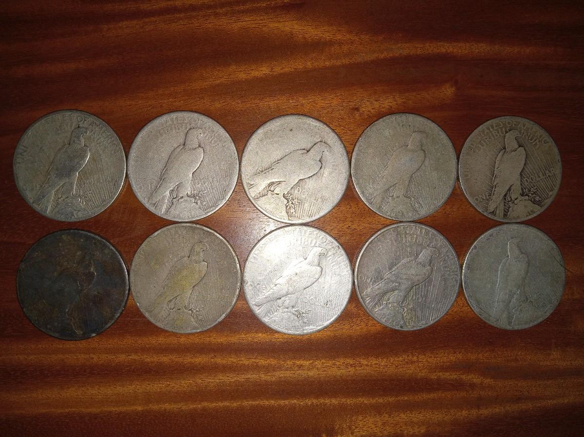 10 various dates peace dollars