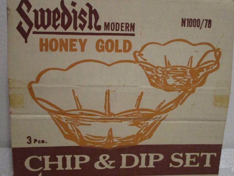 Swedish Modern Honey Gold Chip and Dip set model B1000/78